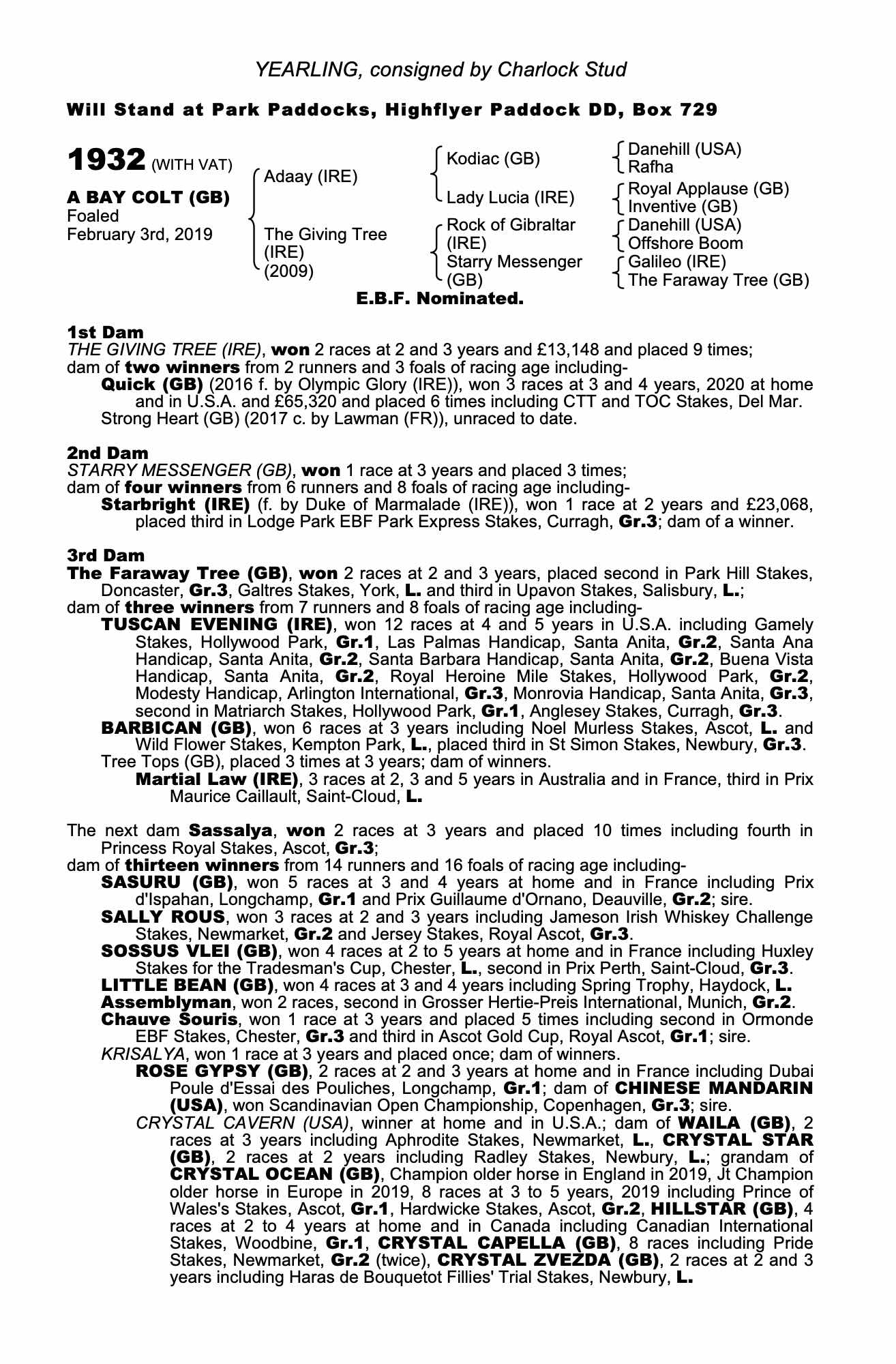 December Foal Sale 2019 lot 225, Batsford Stud Ltd.=>Woodstock 2,500 gns