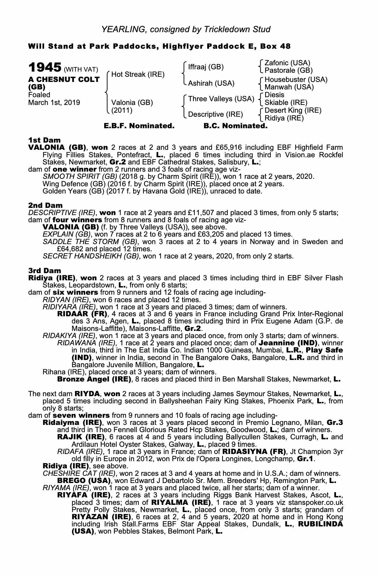 Consignor: Trickledown Stud