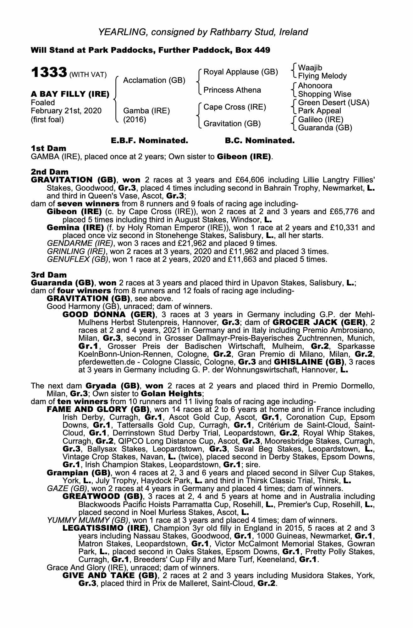 Consignor: Rathbarry Stud, Ireland