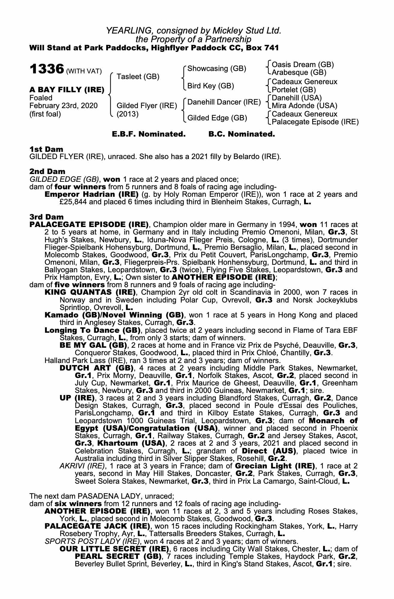 Consignor: Mickley Stud Ltd.