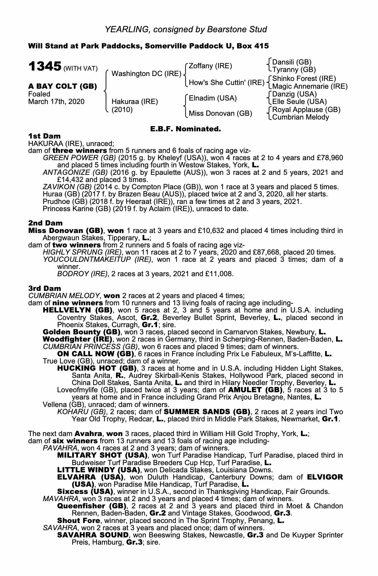 Consignor: Bearstone Stud