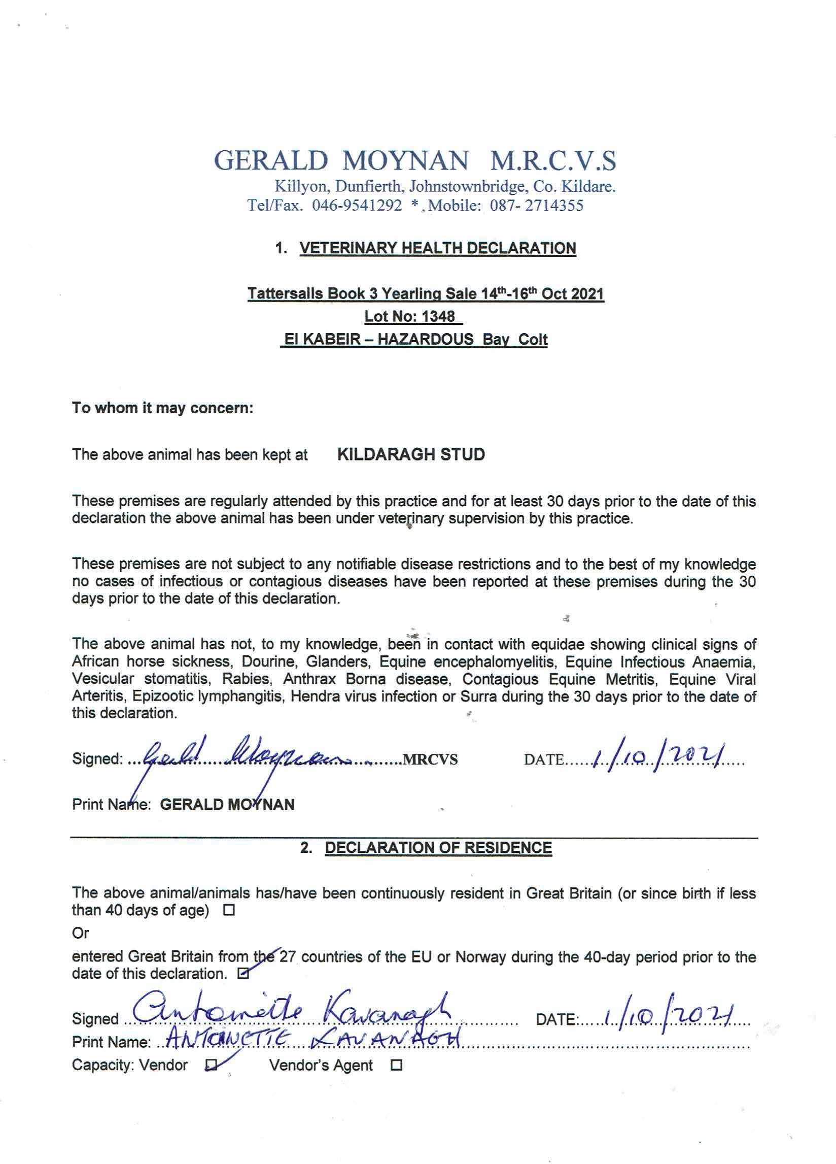 Consignor: Kildaragh Stud, Ireland (Agent)