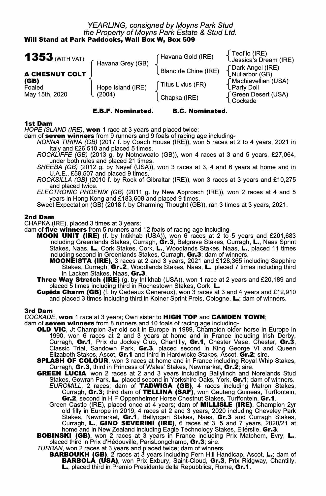 Consignor: Moyns Park Stud