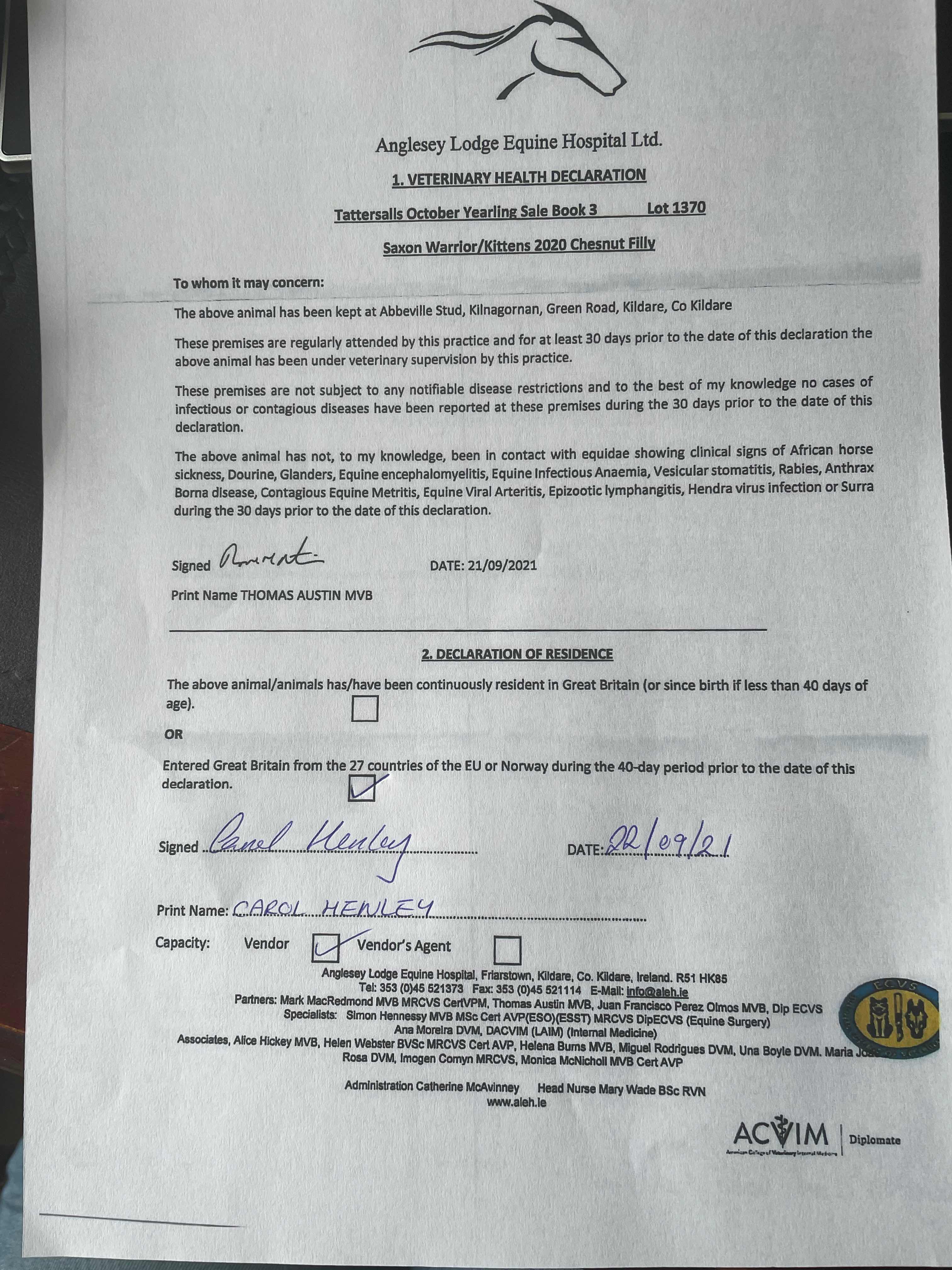Consignor: Baroda Stud, Ireland