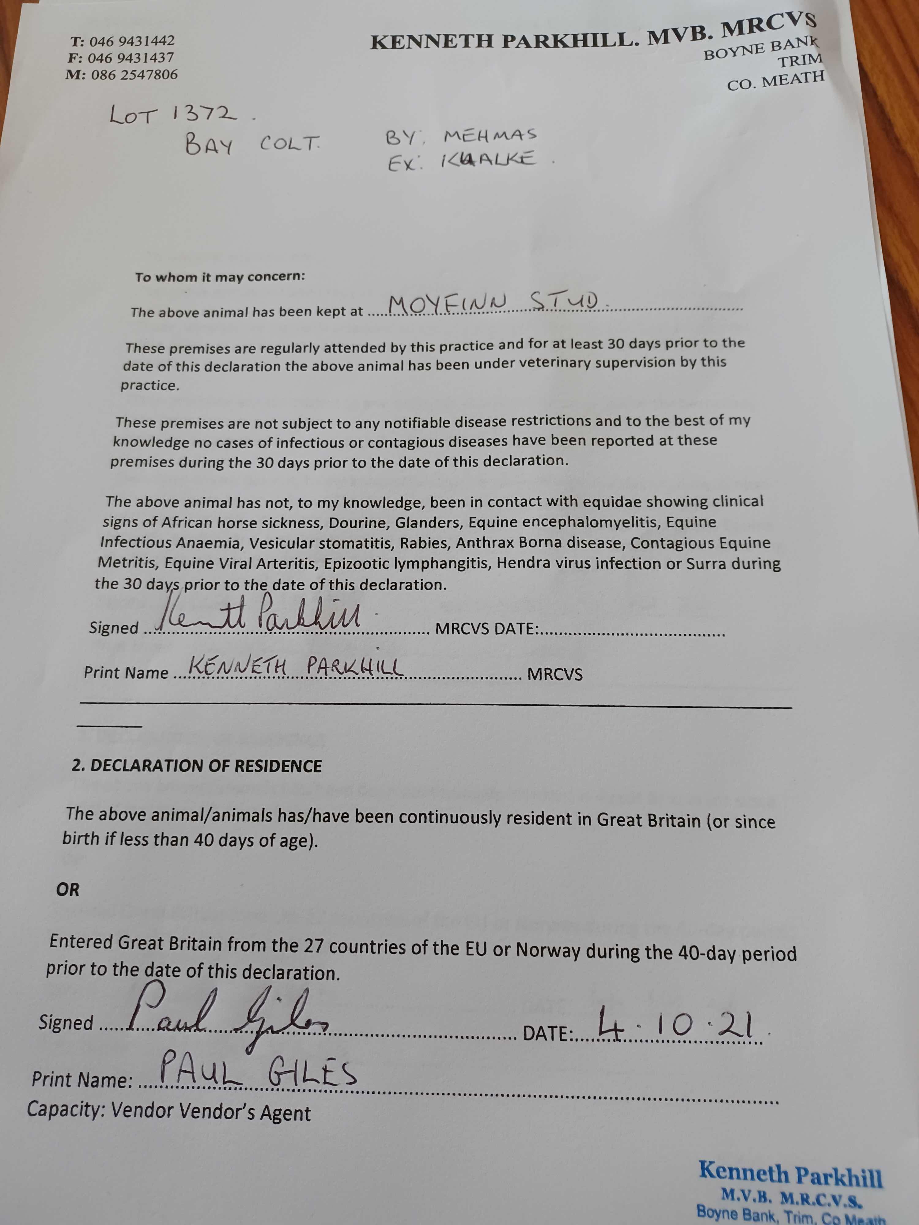 Consignor: Moyfinn Stud, Ireland