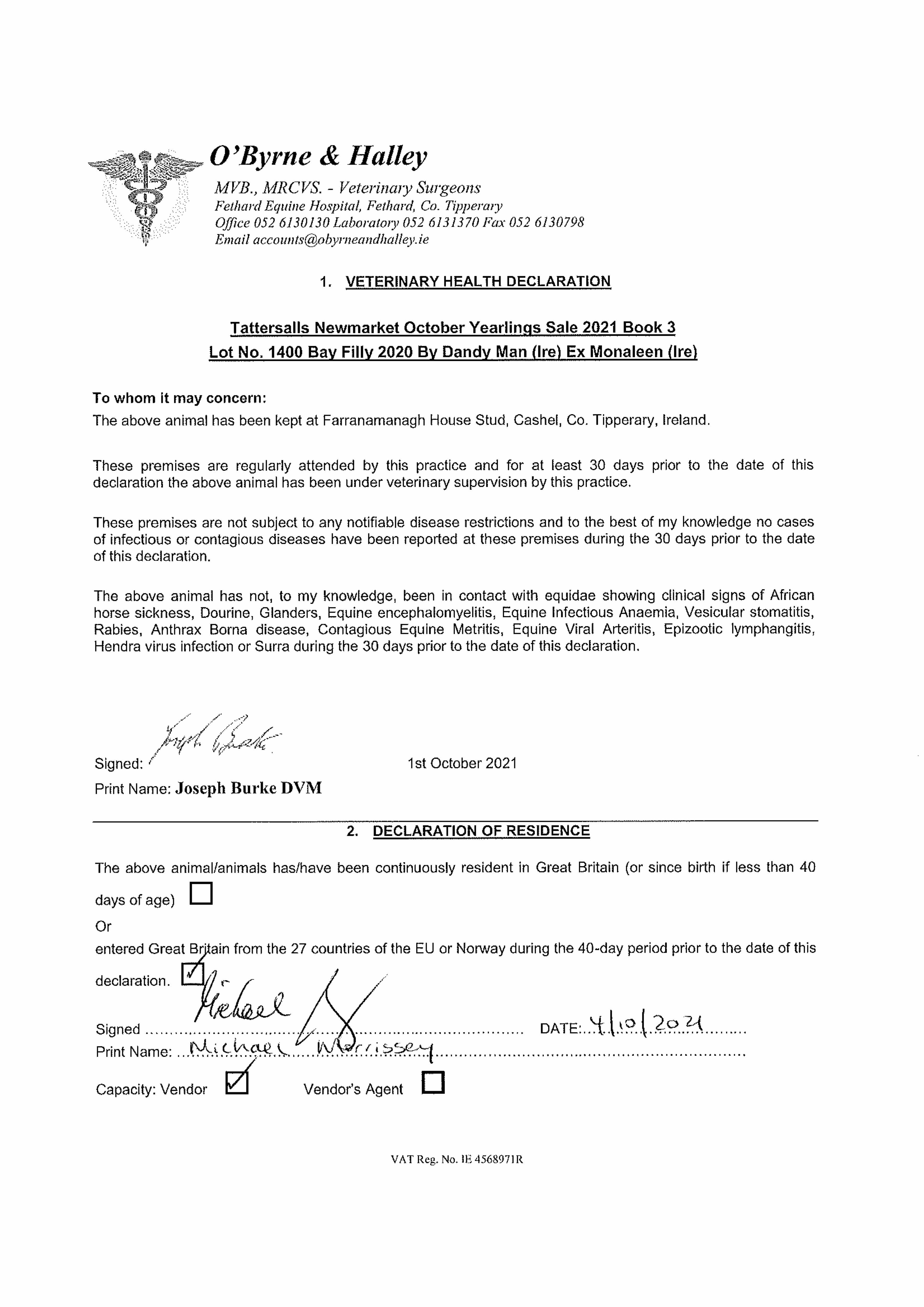 Online Sale - 25th October 2024 lot 131 F. by Galileo Gold (GB) 2023, Farranamanagh House Stud, Ireland=>Vendor 2,000 gns