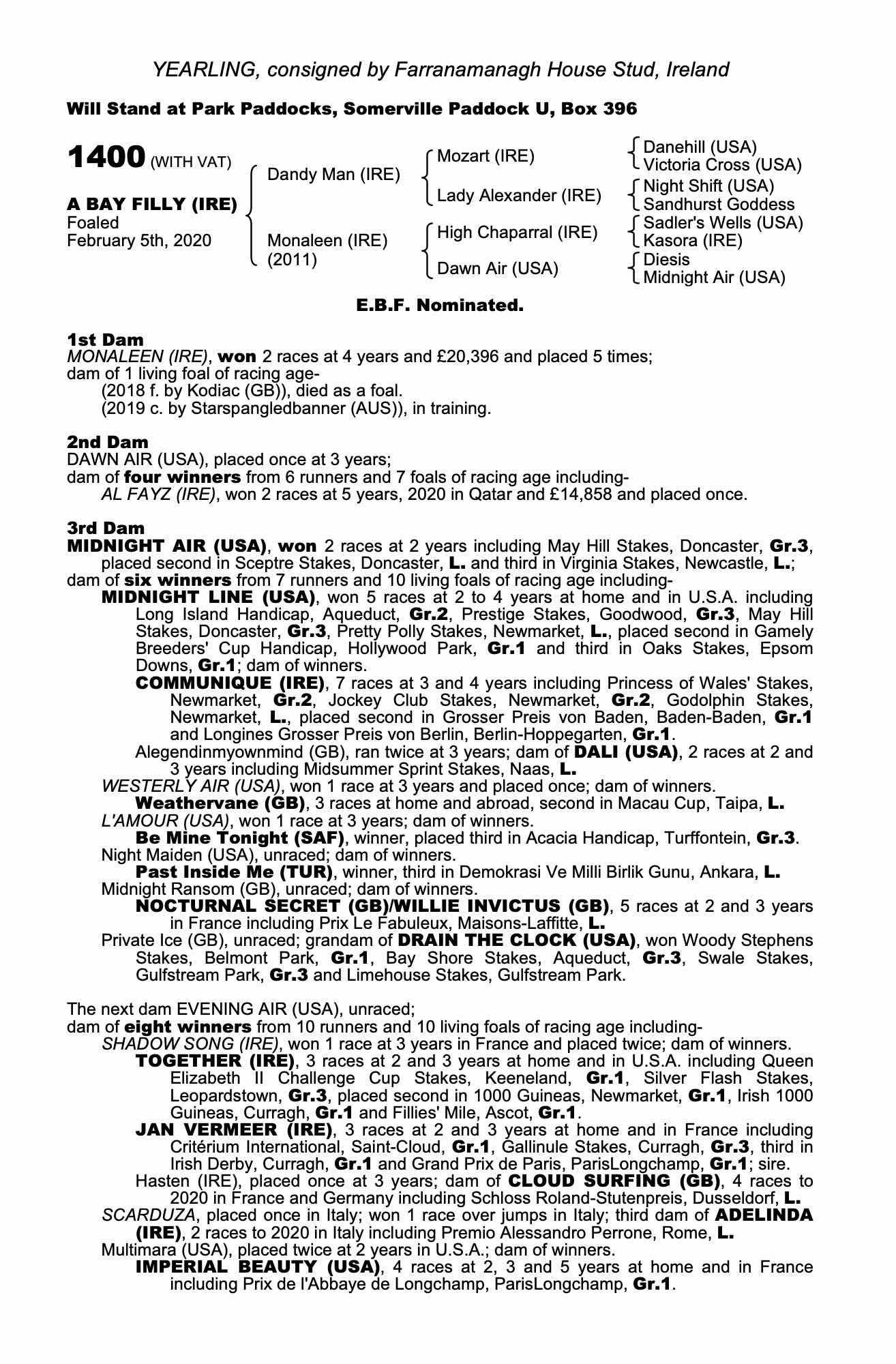 September Yearling Sale 2022 lot 76 F. by Zoffany (IRE) 2021, Farranamanagh House Stud=>Amanda Skiffington €28,000