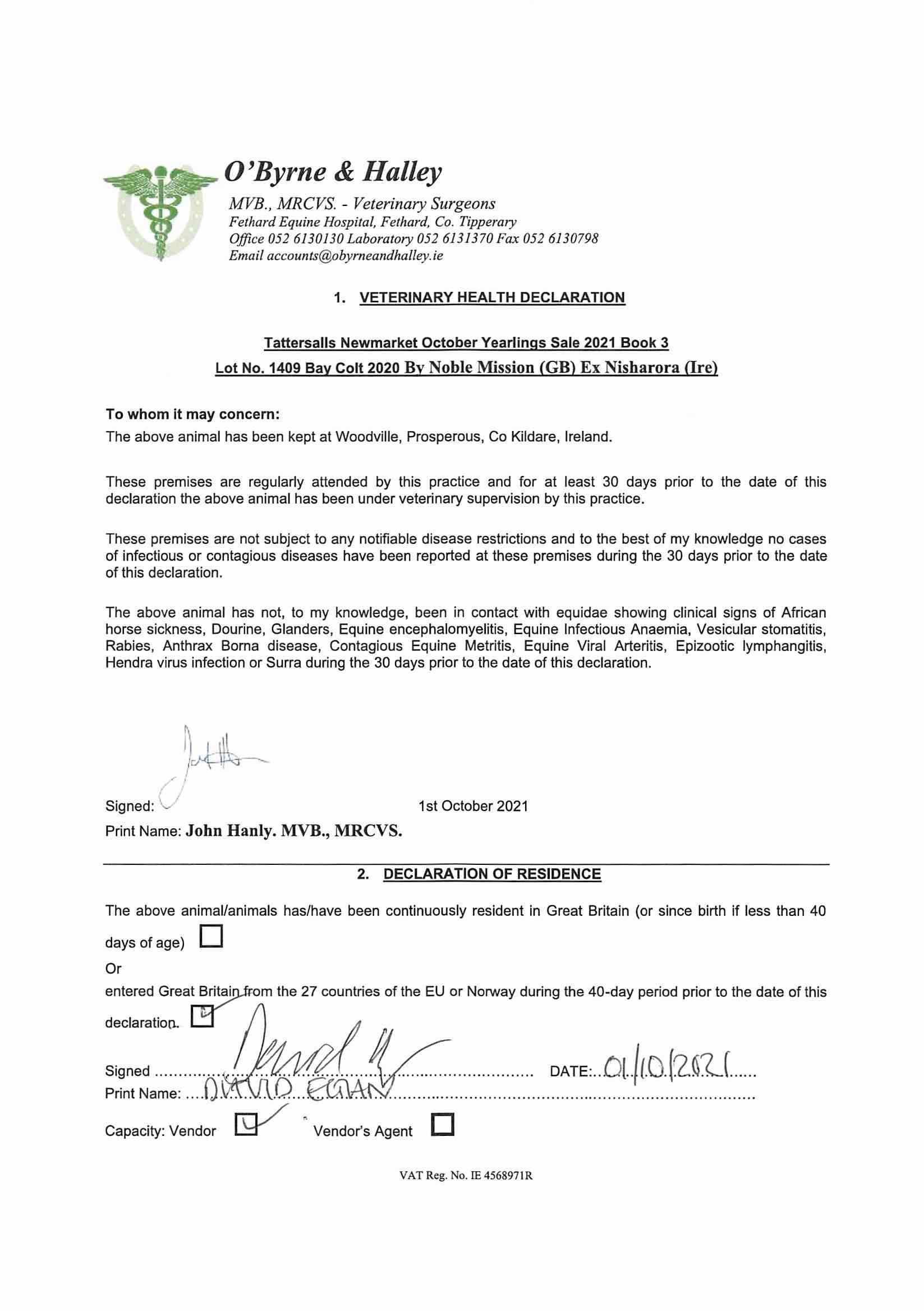 Lot 1409 Noble Mission (GB) /Nisharora (IRE) B.C. (USA)