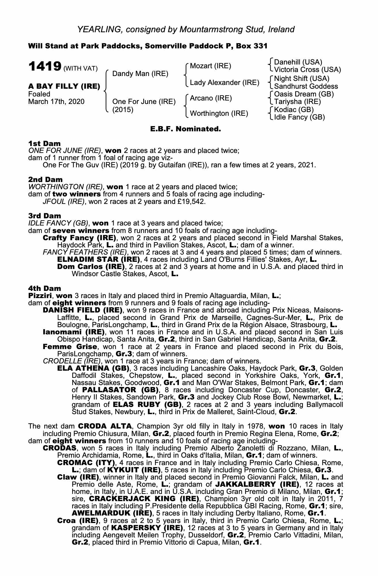 Consignor: Mountarmstrong Stud, Ireland