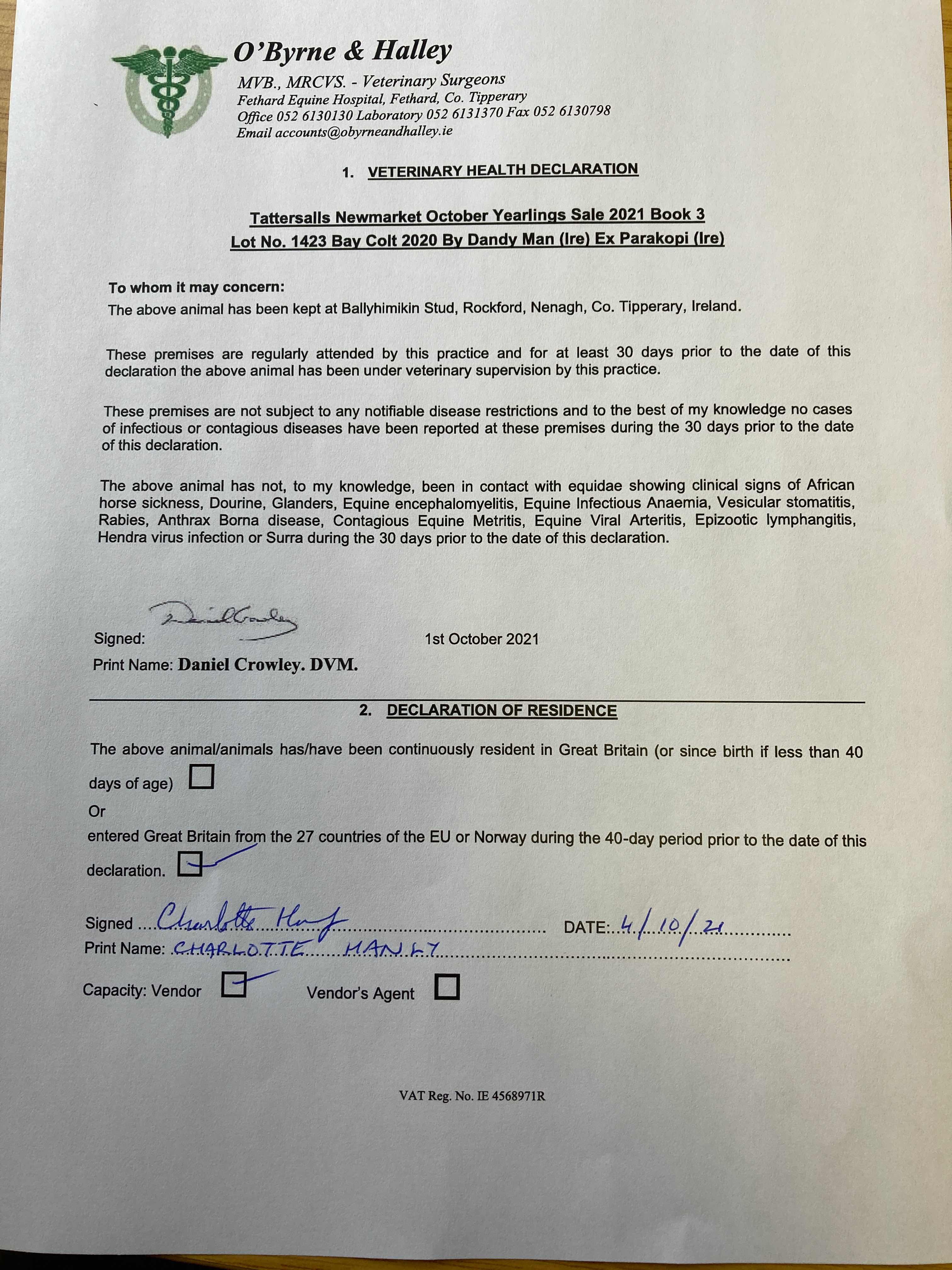 Consignor: Ballyhimikin Stud, Ireland