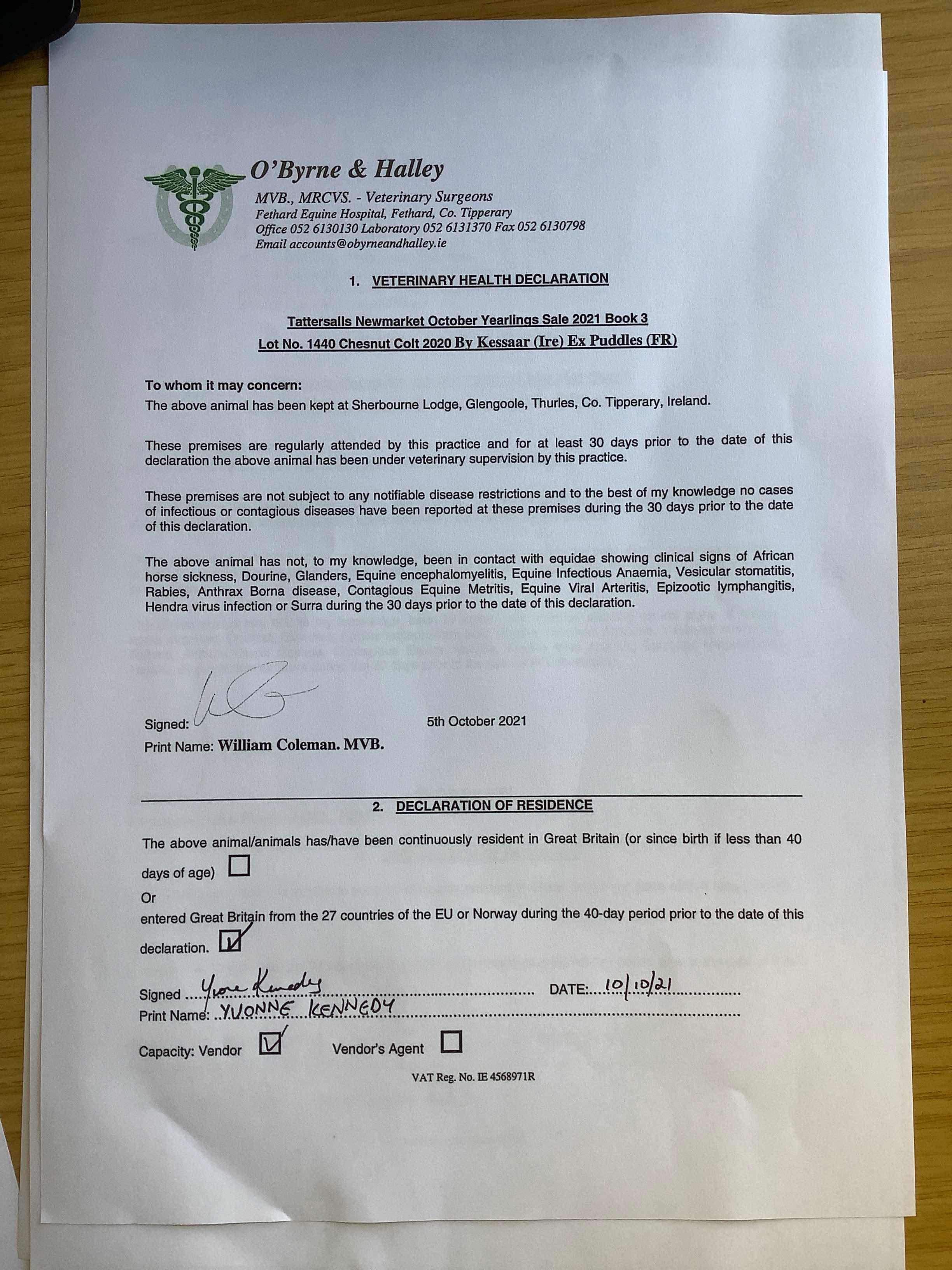 Consignor: Sherbourne Lodge, Ireland