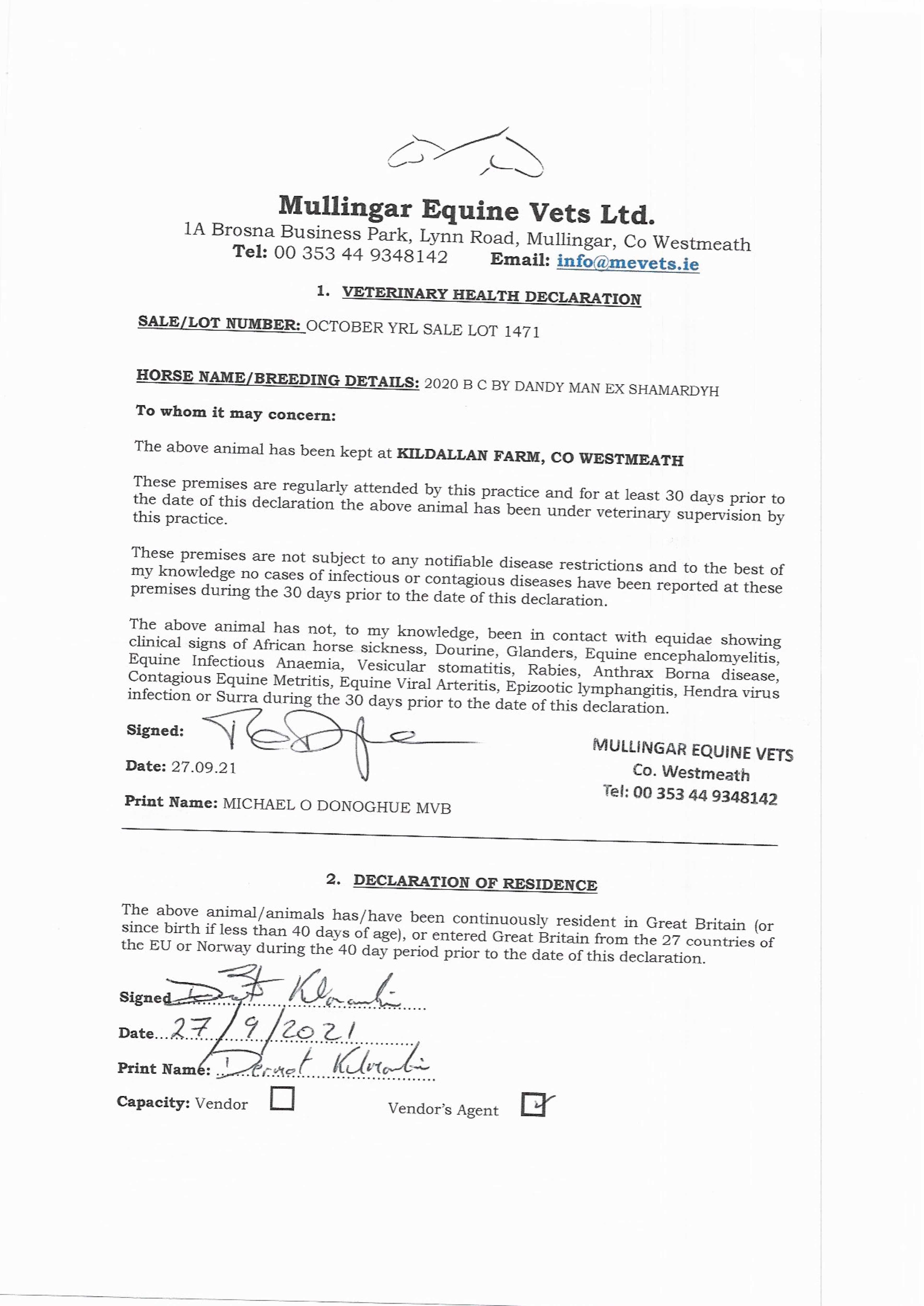 Consignor: Kildallan Farm, Ireland