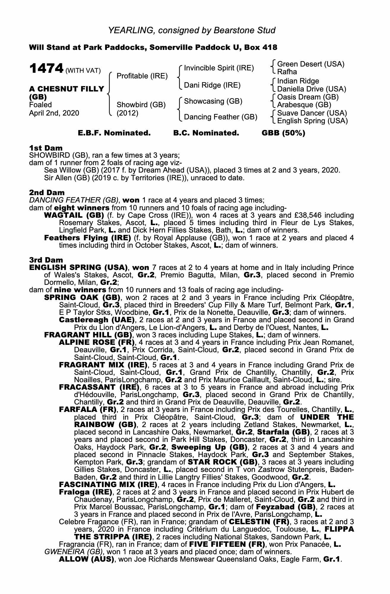 Online Sale - 19th September 2024 lot 141 F. by Sergei Prokofiev (CAN) 2023, Bearstone Stud=>Vendor 3,000 gns