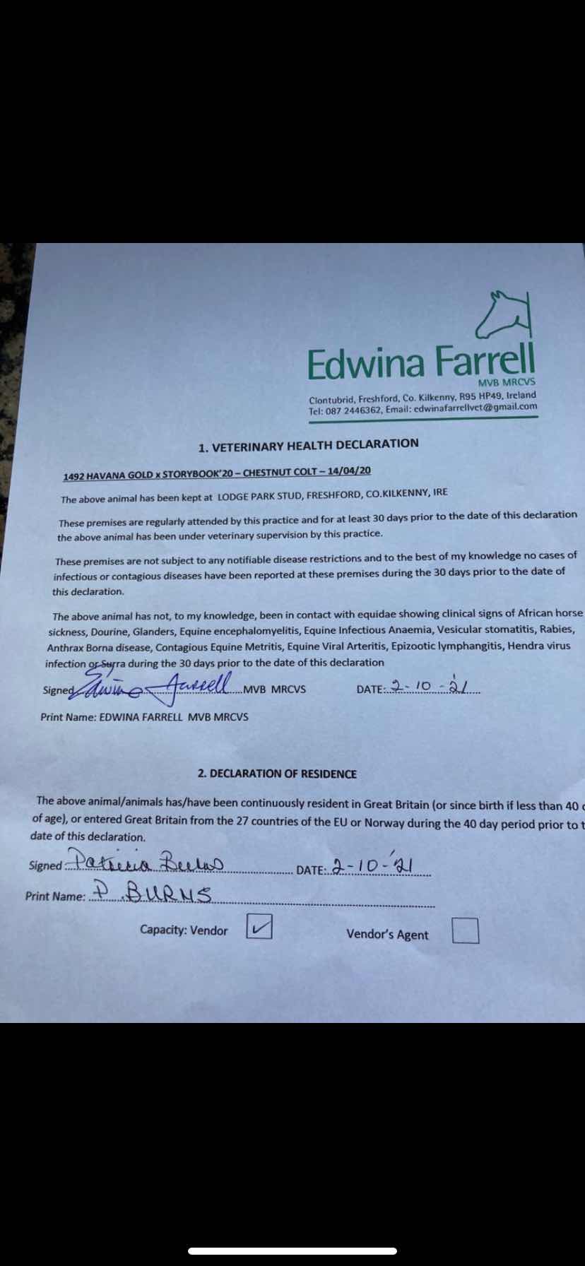 Consignor: Lodge Park Stud, Ireland