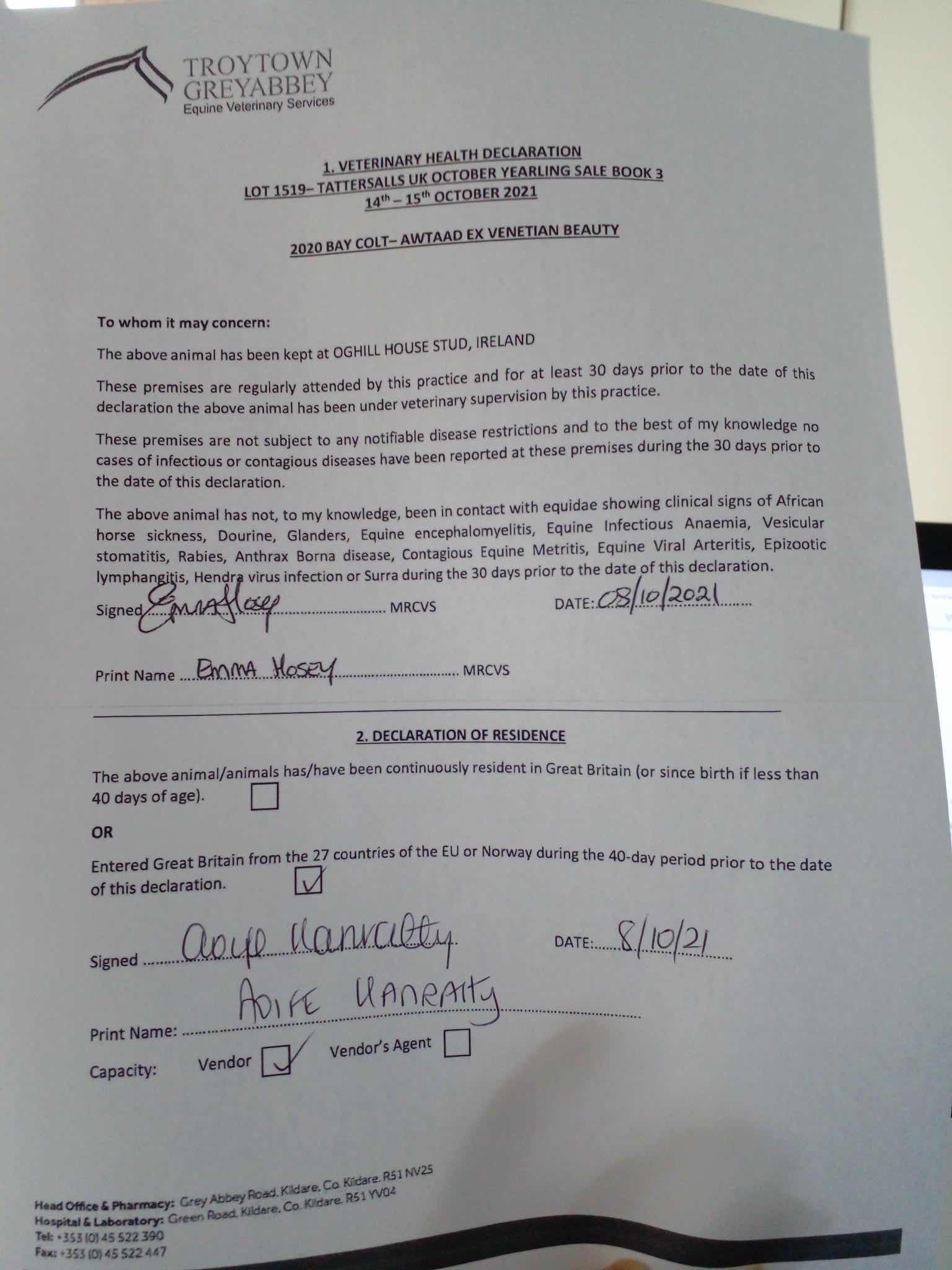 Consignor: Oghill House Stud, Ireland