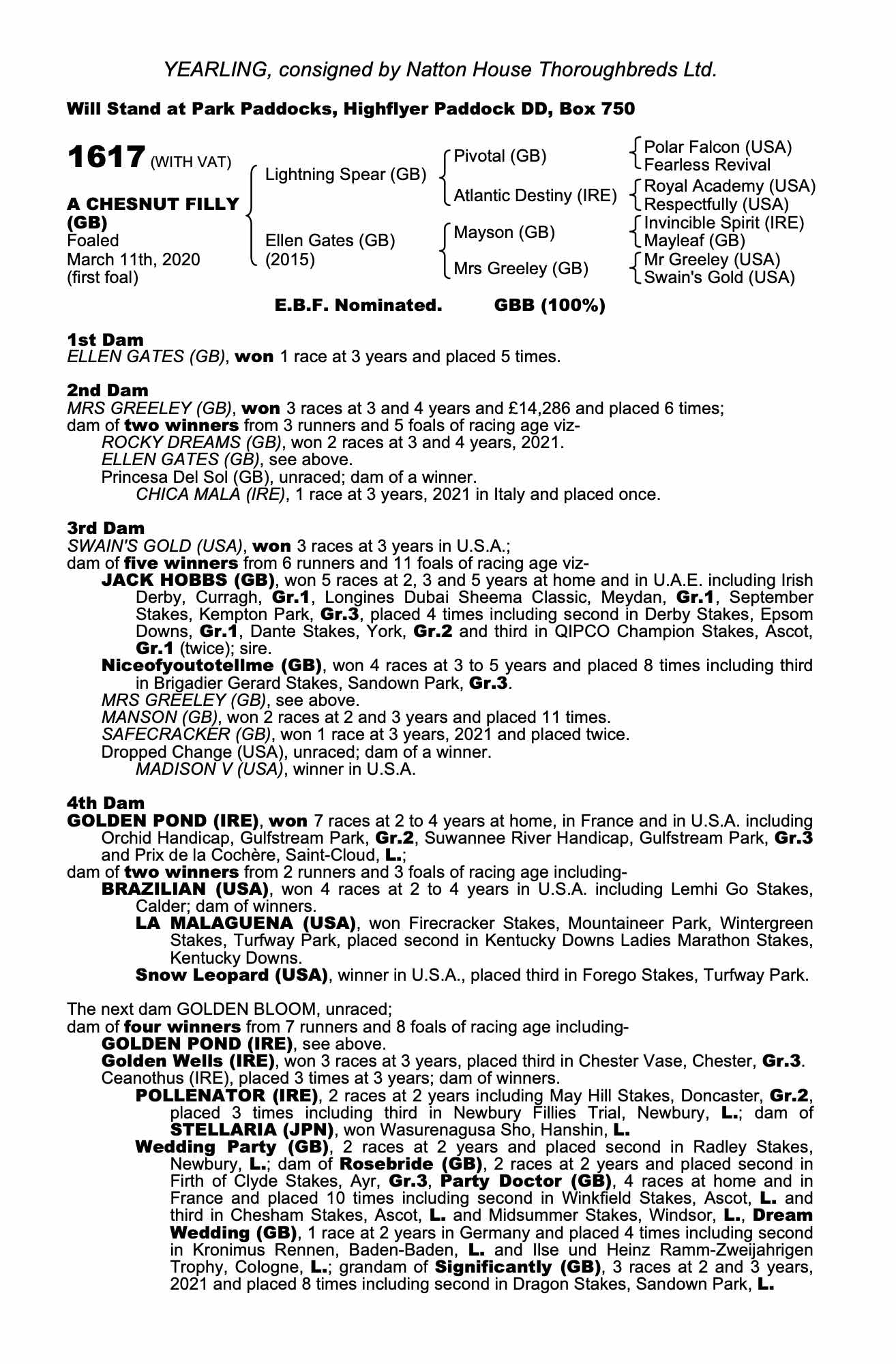 October Yearling Sale, Book 4 2022 lot 2086 F. by Land Force (IRE) 2021, Natton House Thoroughbreds Ltd.=>Alfa Site 23,000 gns