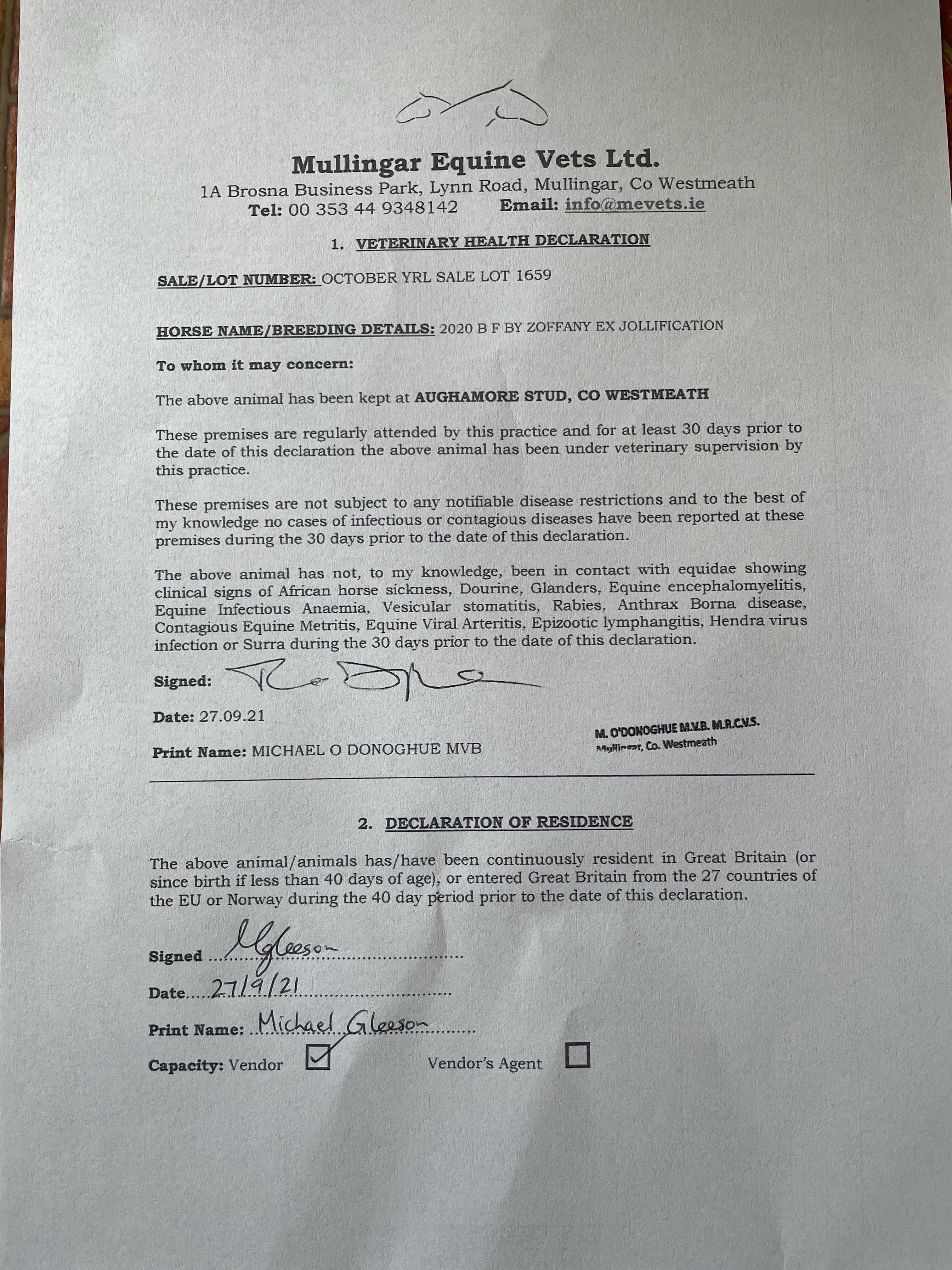 Consignor: Aughamore Stud, Ireland