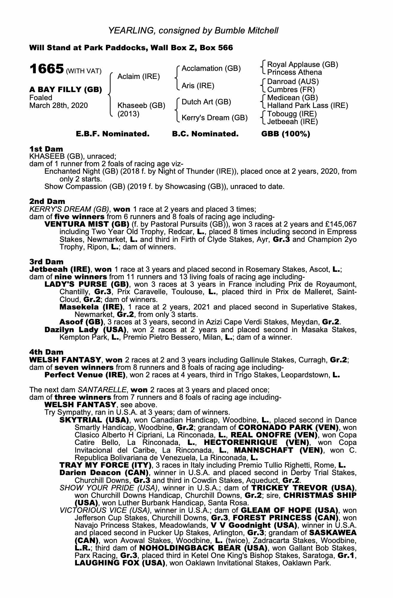October Yearling Sale, Book 3 2020 lot 1474 F. by Showcasing (GB) 2019, Bumble Mitchell=>DPA Bloodstock 40,000 gns