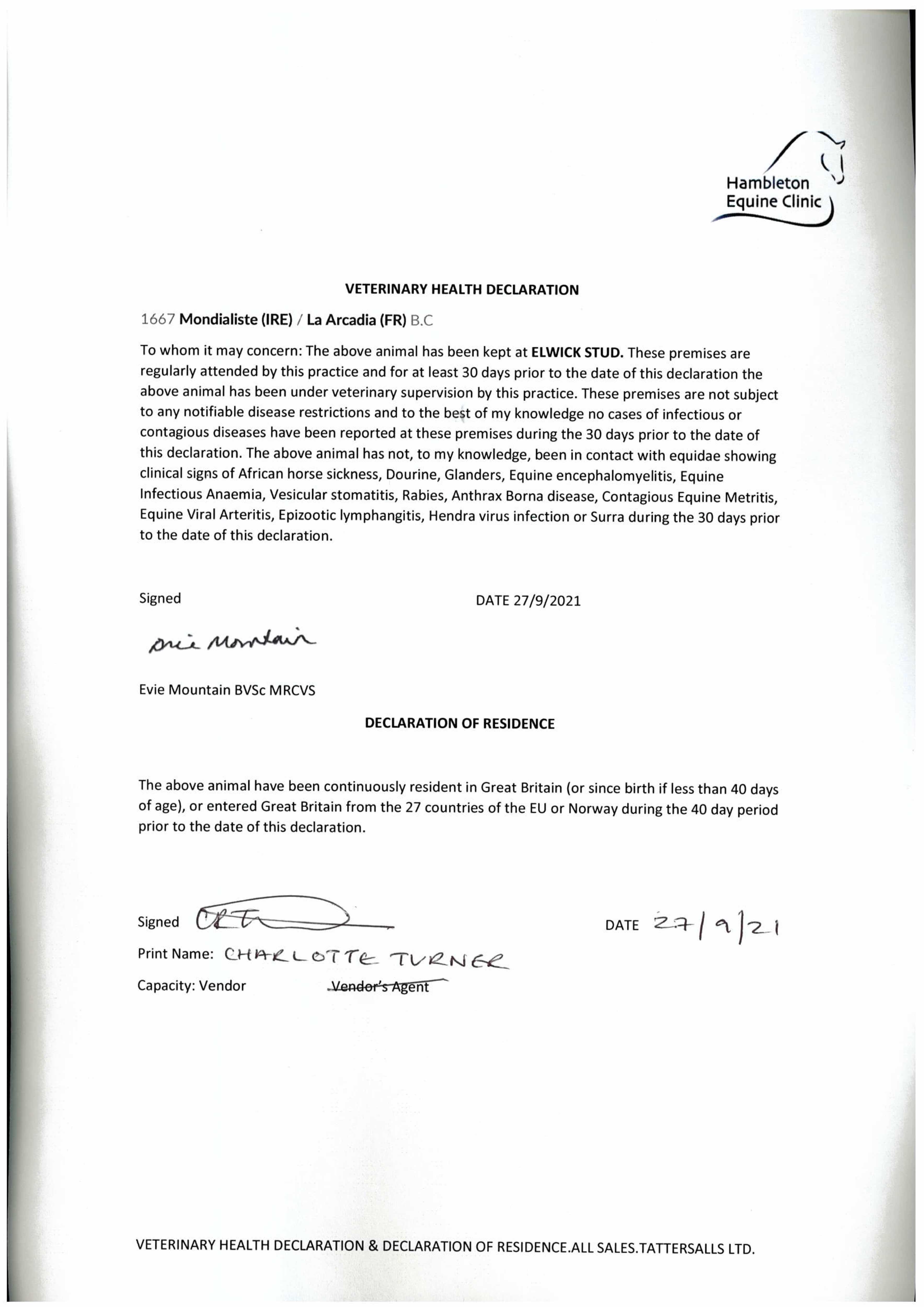 Consignor: Jamie Railton (Agent)