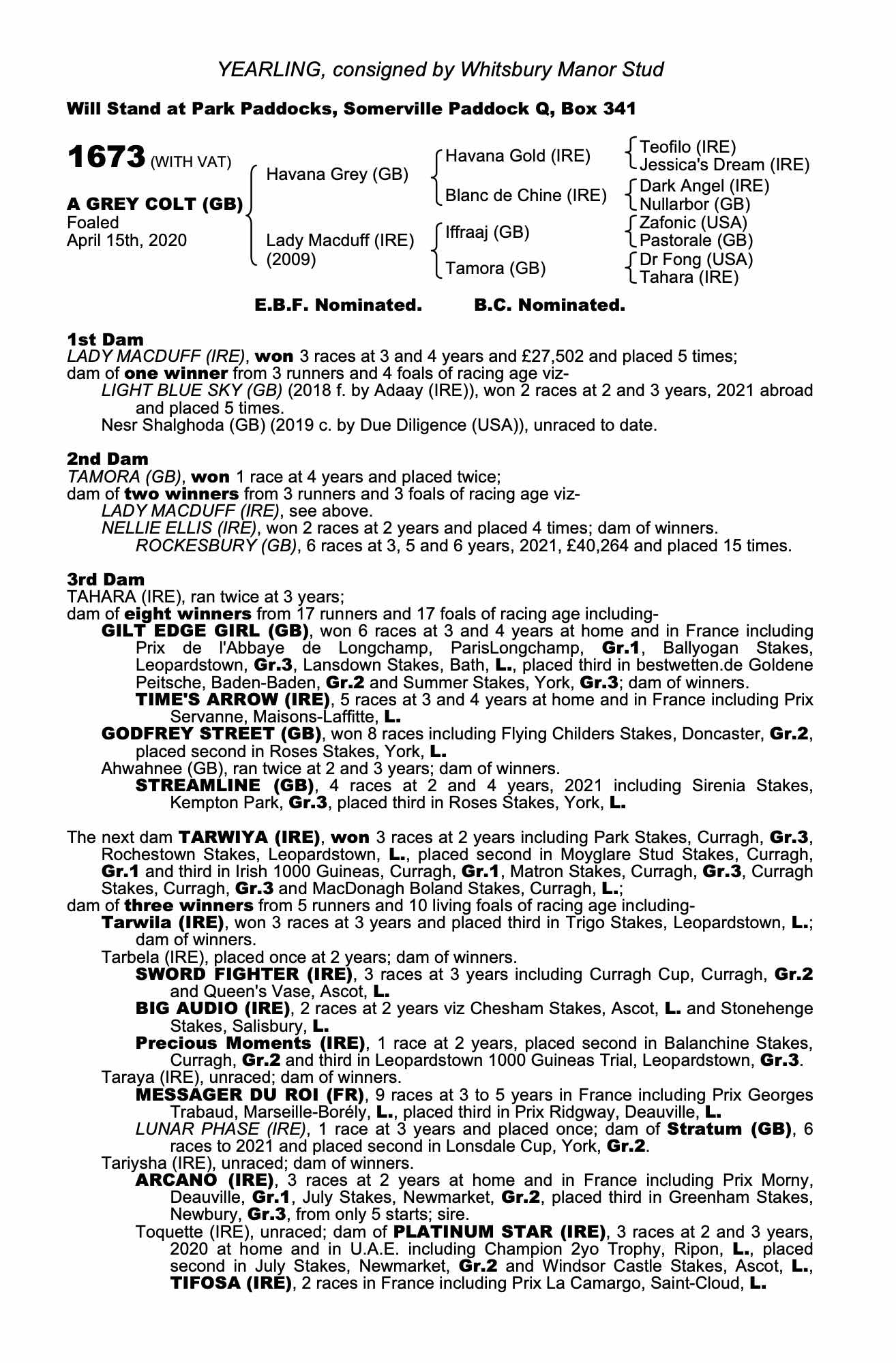 Consignor: Whitsbury Manor Stud