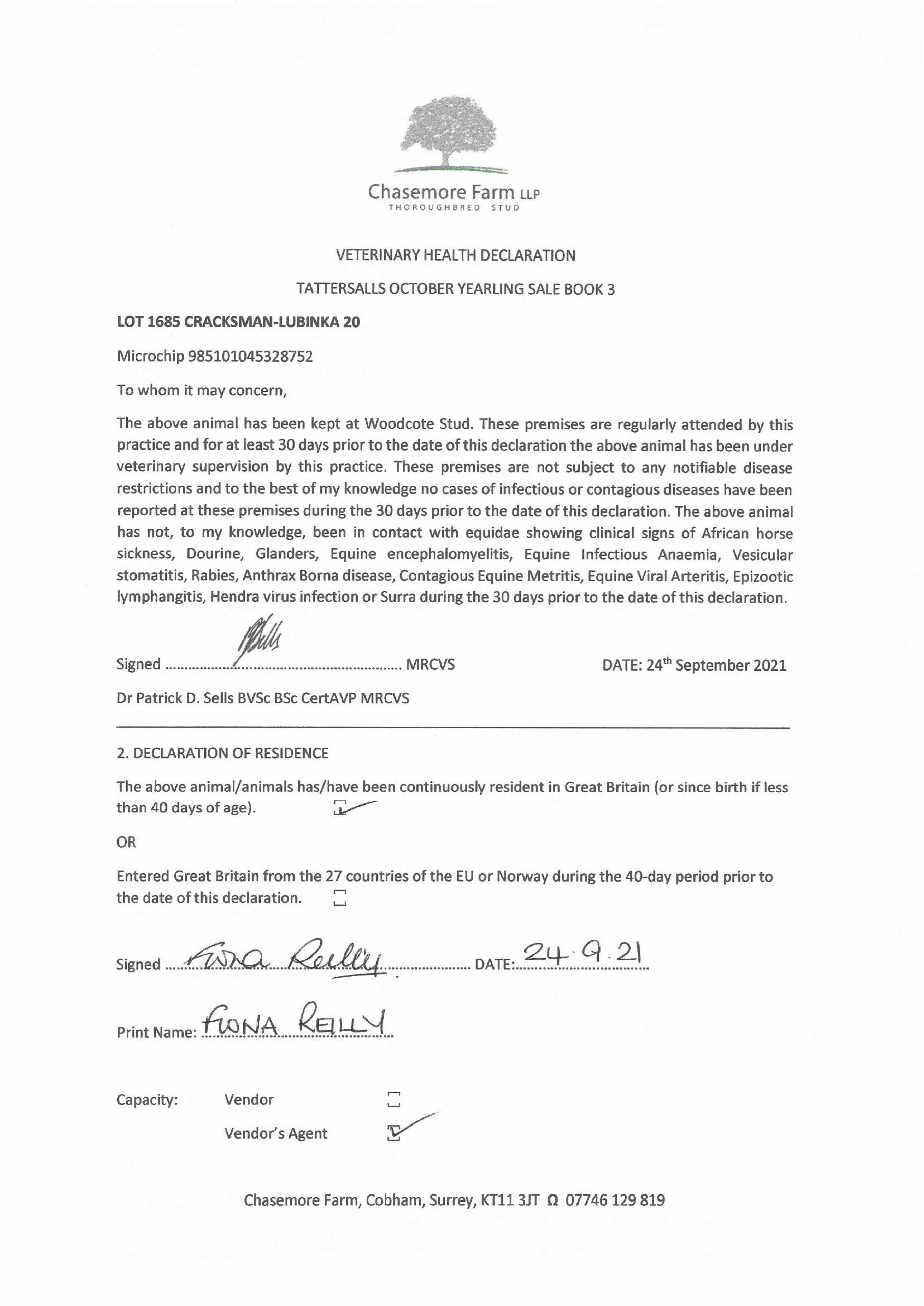 Consignor: Woodcote Stud