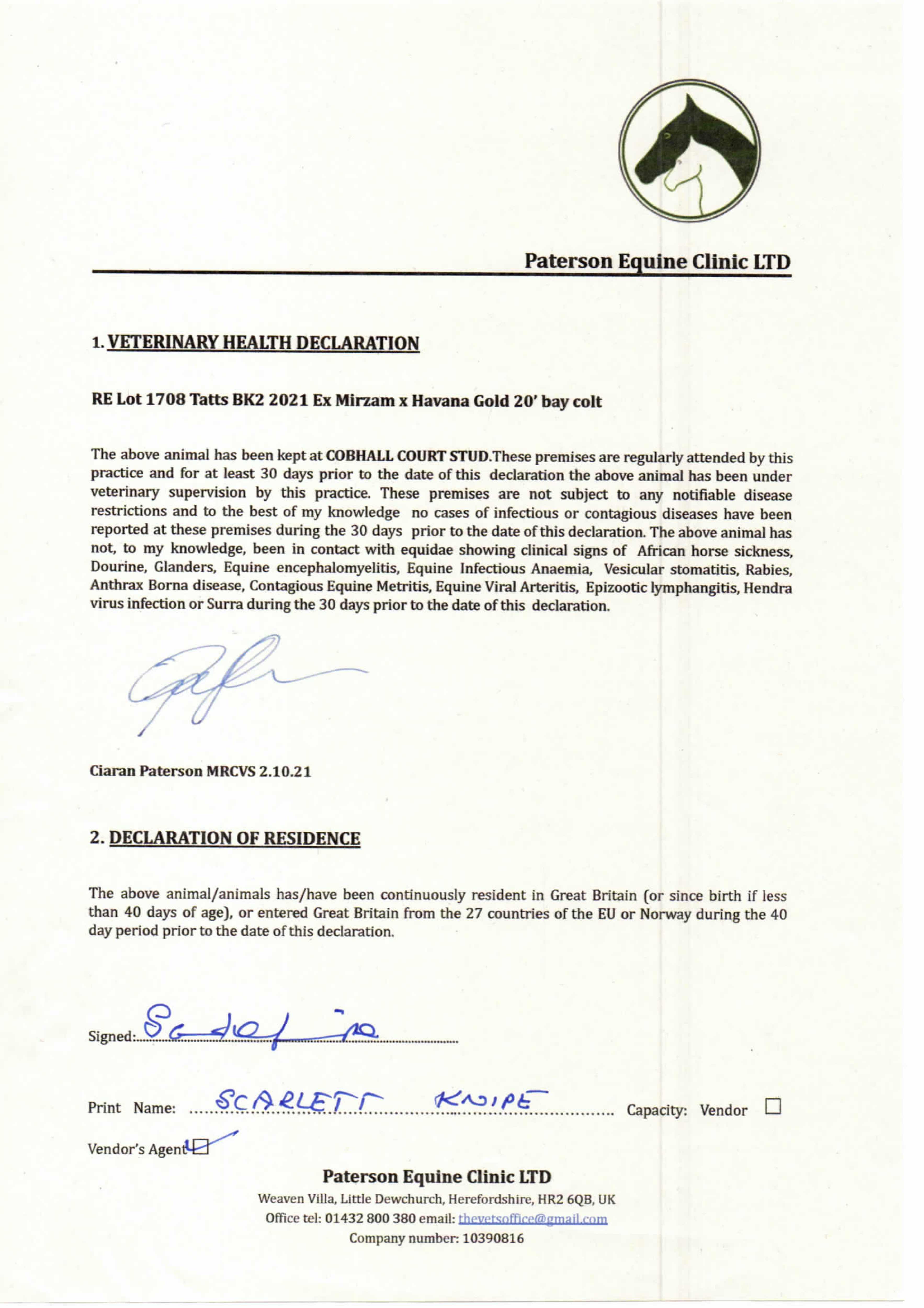 Consignor: Cobhall Court Stud