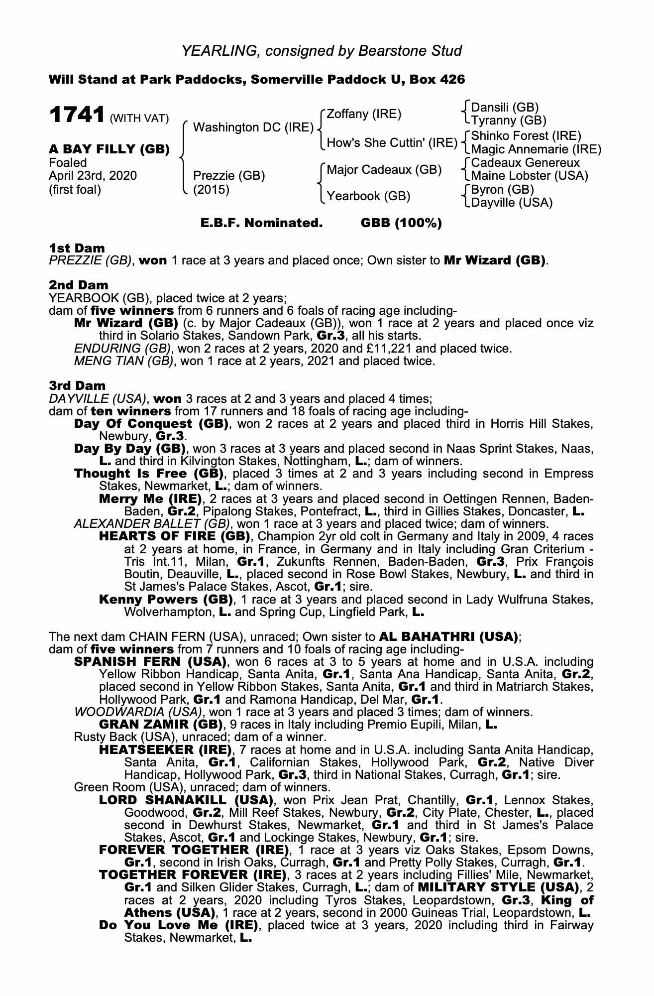 Somerville Yearling Sale 2024 lot 341 F. by Havana Grey (GB) 2023, Bearstone Stud=>Pegasus Bloodstock 18,000 gns