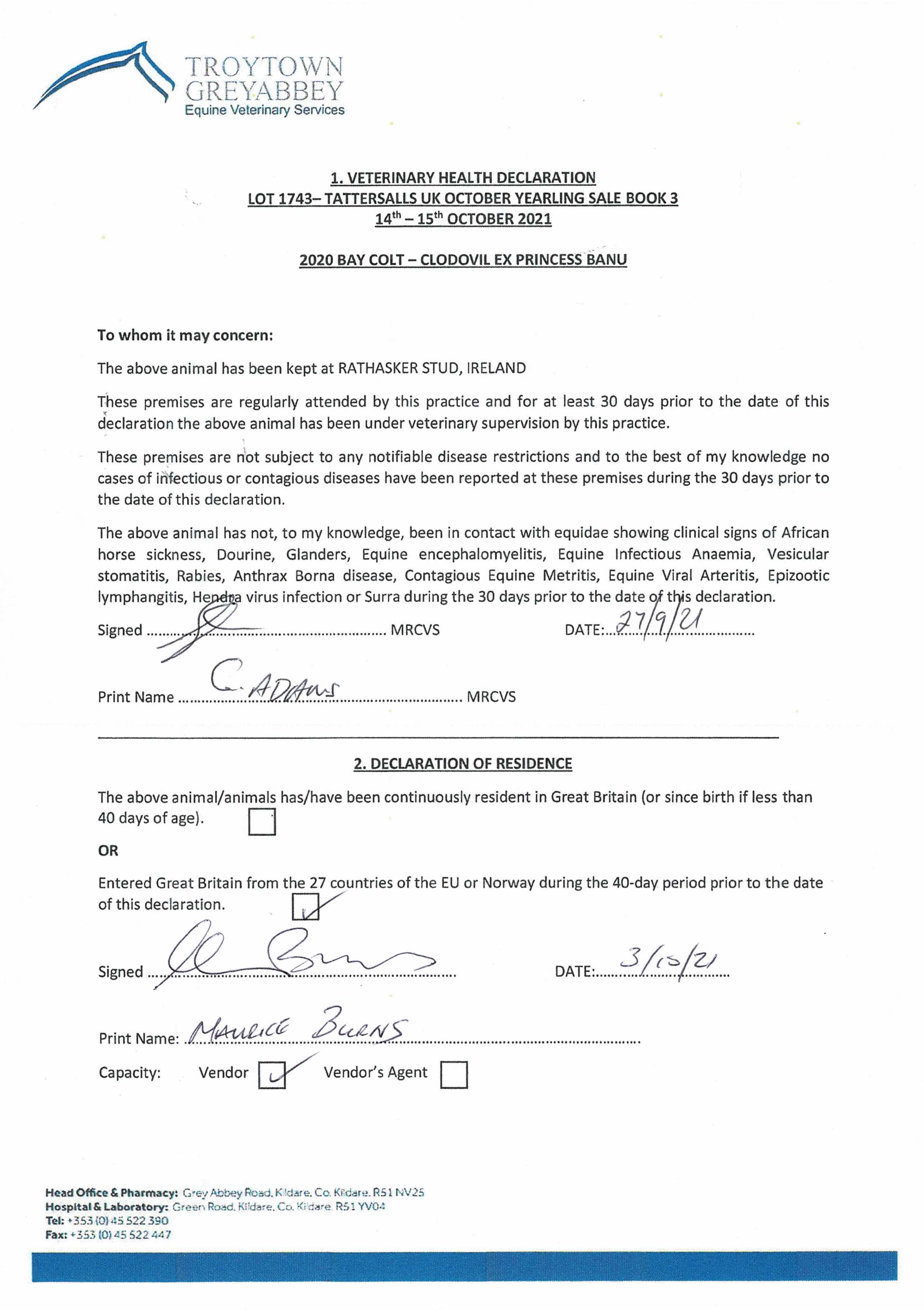 Consignor: Rathasker Stud, Ireland