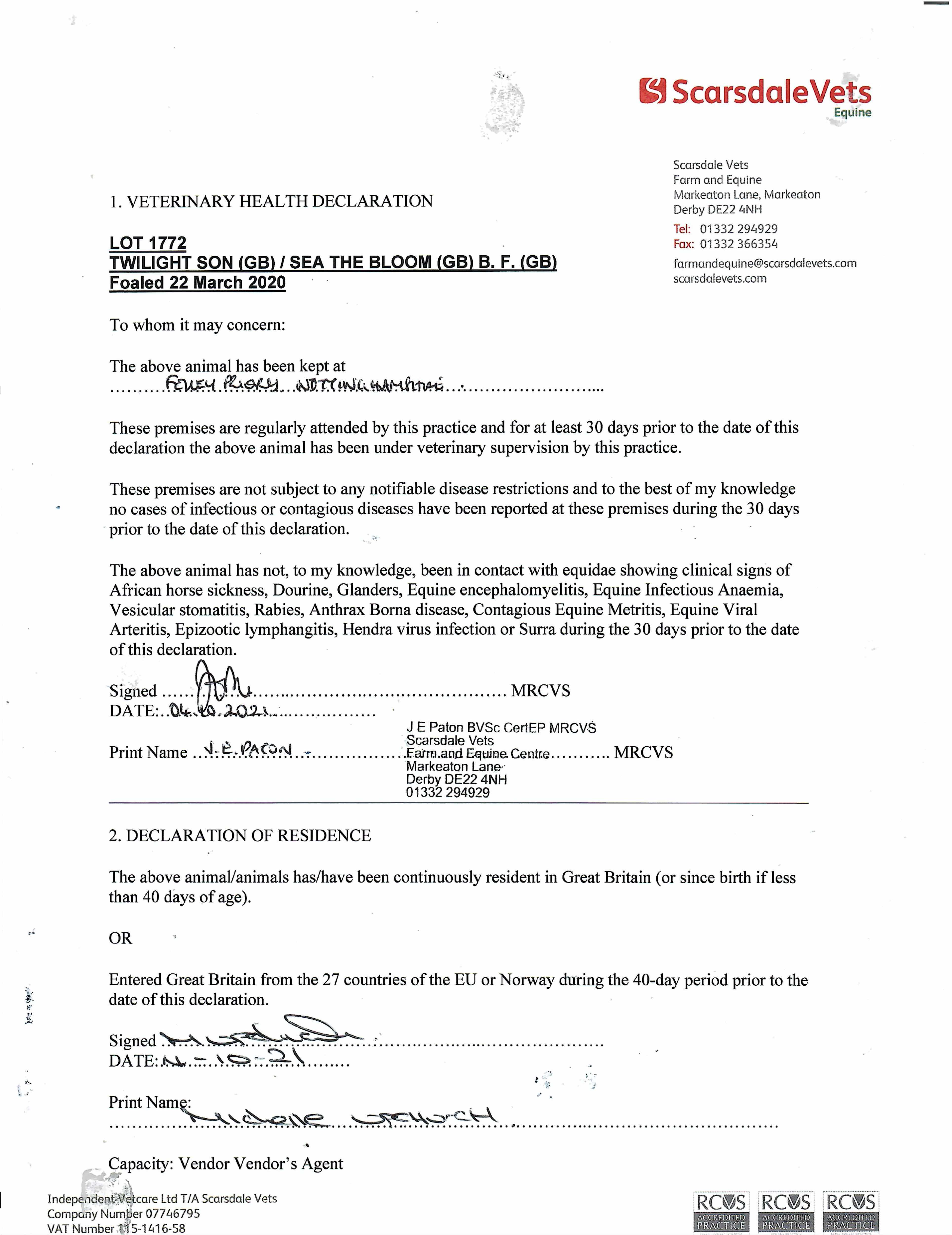 Location: FELLEY PRIORY STUD, Nottingham