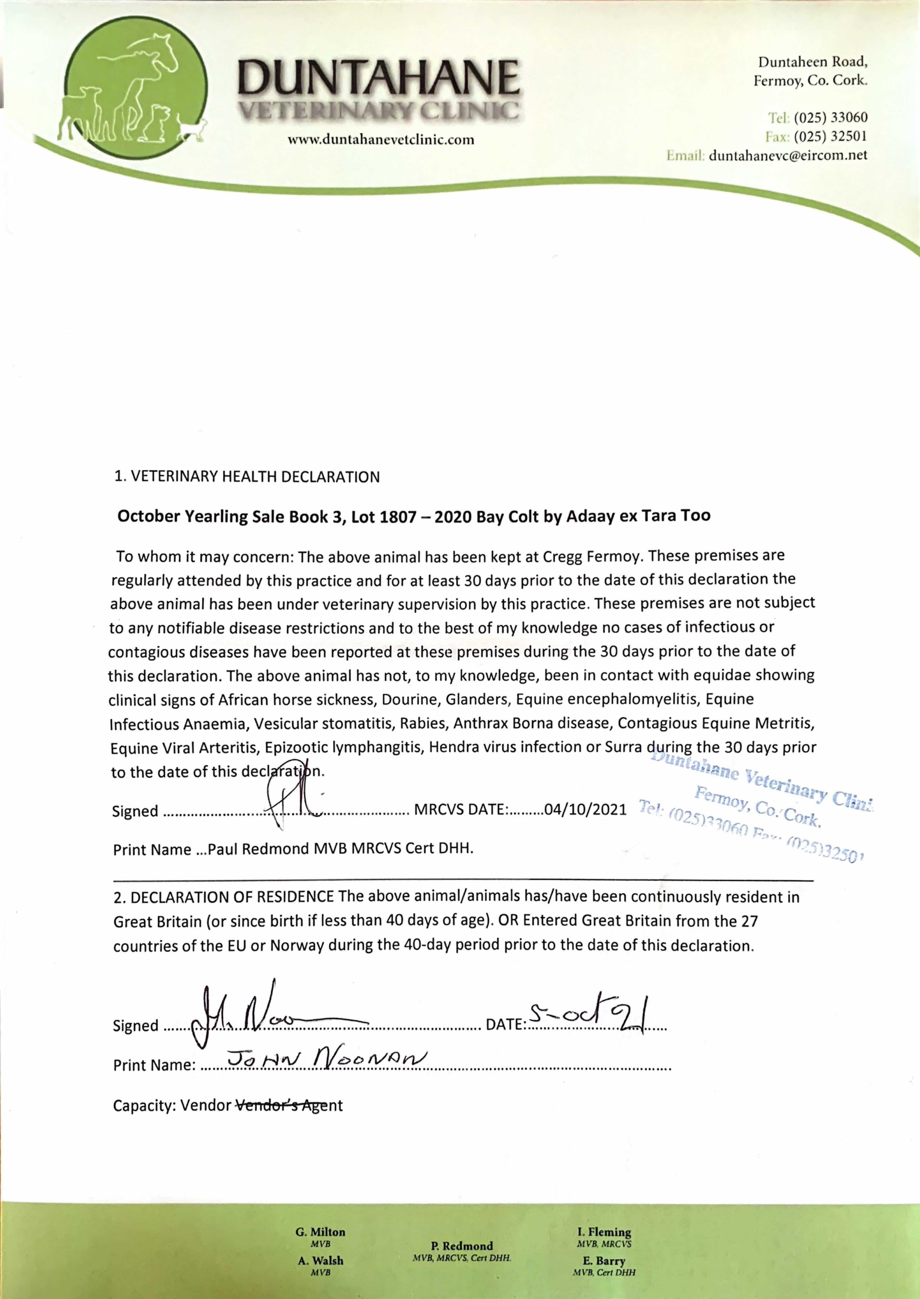 October Yearling Sale, Book 3 2010 lot 2105 F. by One Cool Cat (USA) 2009, Tally-Ho Stud, Ireland=>Vendor 1,800 gns