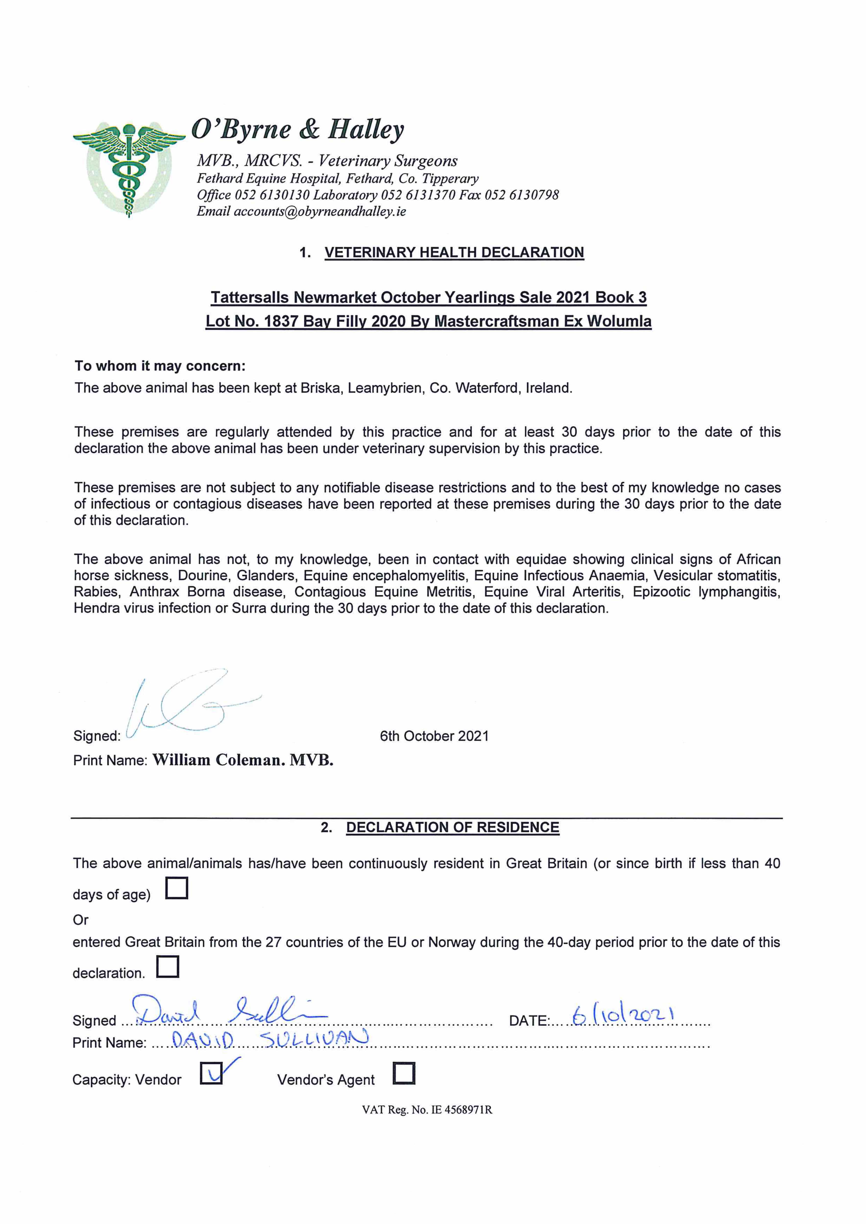 Sapphire Sale 2023 lot 208 C. by Arizona (IRE) 2023, Mr. David Sullivan=>Lot Not Sold €11,500