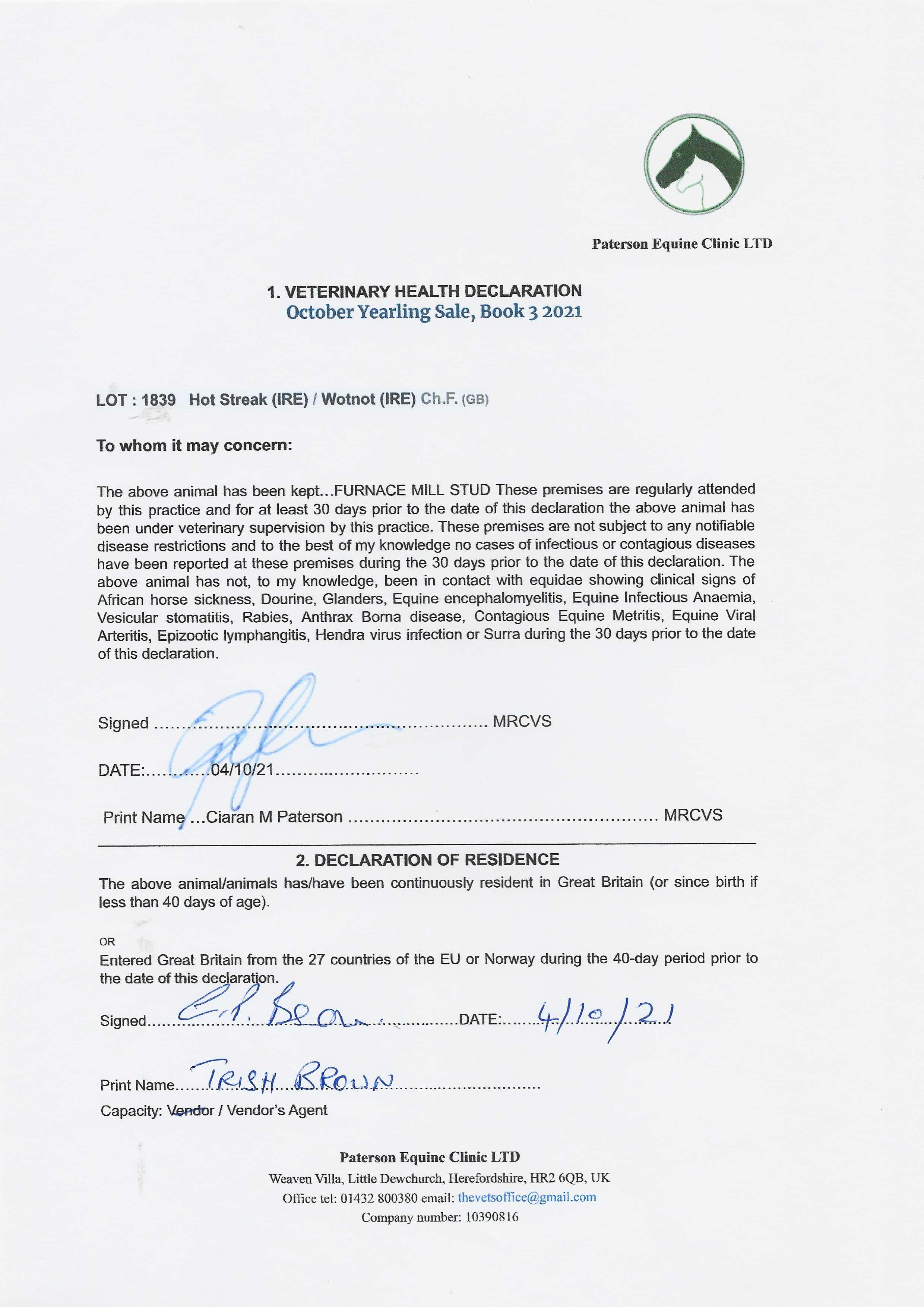 December Foal Sale 2021 lot 335 F. by Cracksman (GB) 2021, Furnace Mill Stud=>Kilbride Equine 21,000 gns