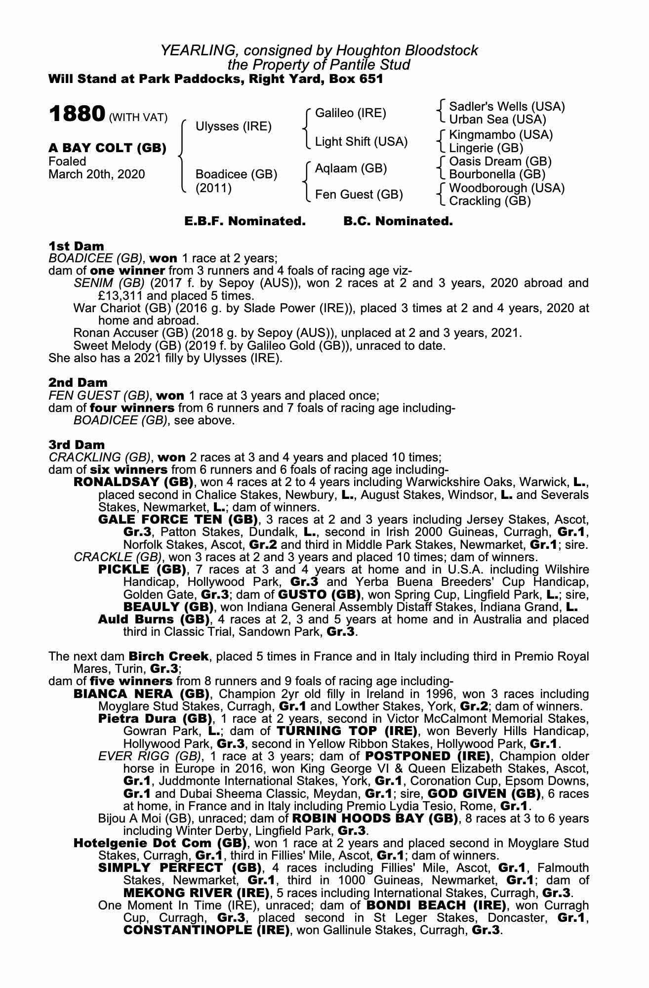 Ulysses (IRE) / Boadicee (GB) B.C. (GB)