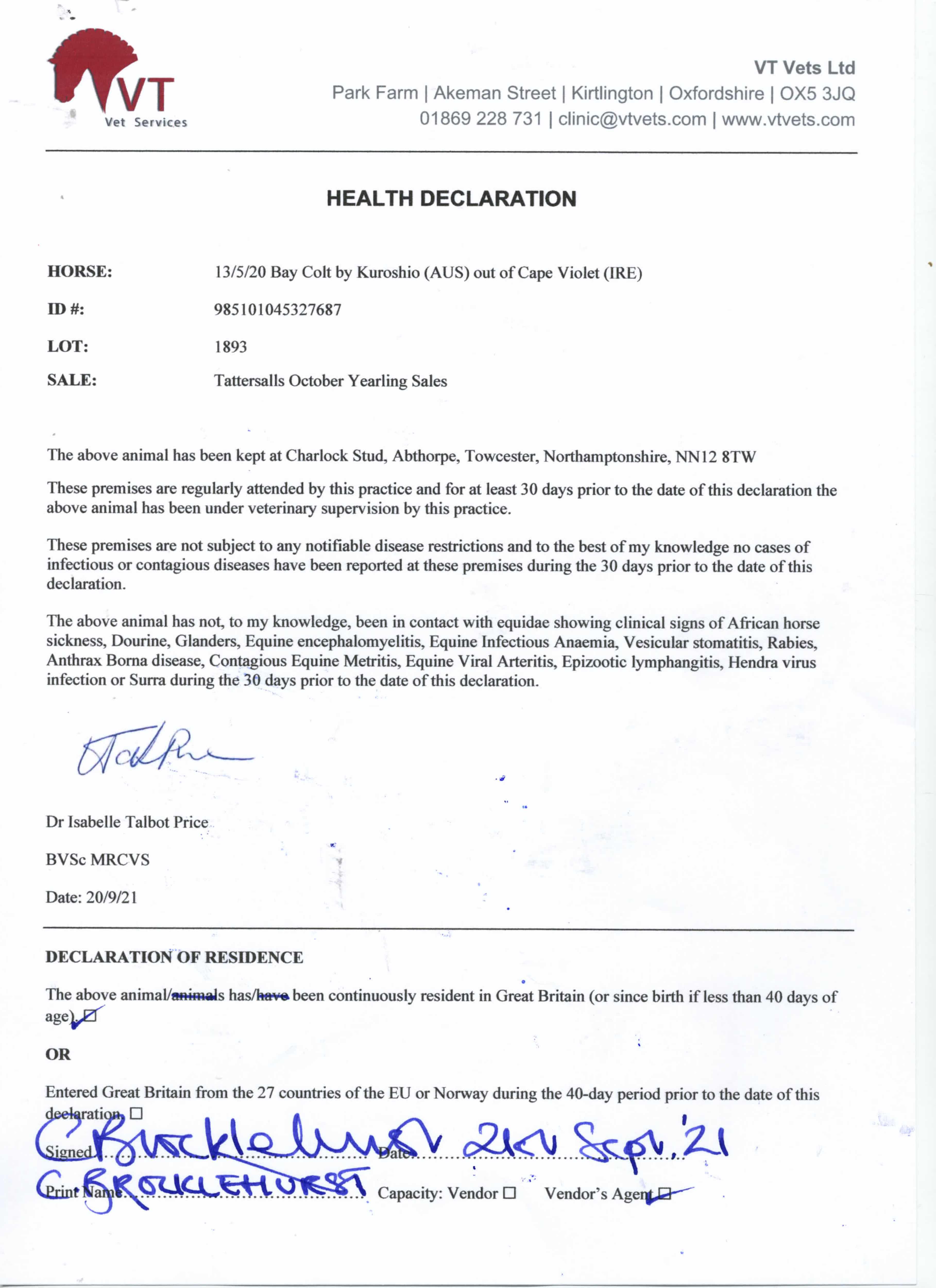 Guineas Breeze Up Sale 2024 lot 254 F. by Acclamation (GB) 2022, A. C. Bloodstock=>Lot Not Sold 39,000 gns
