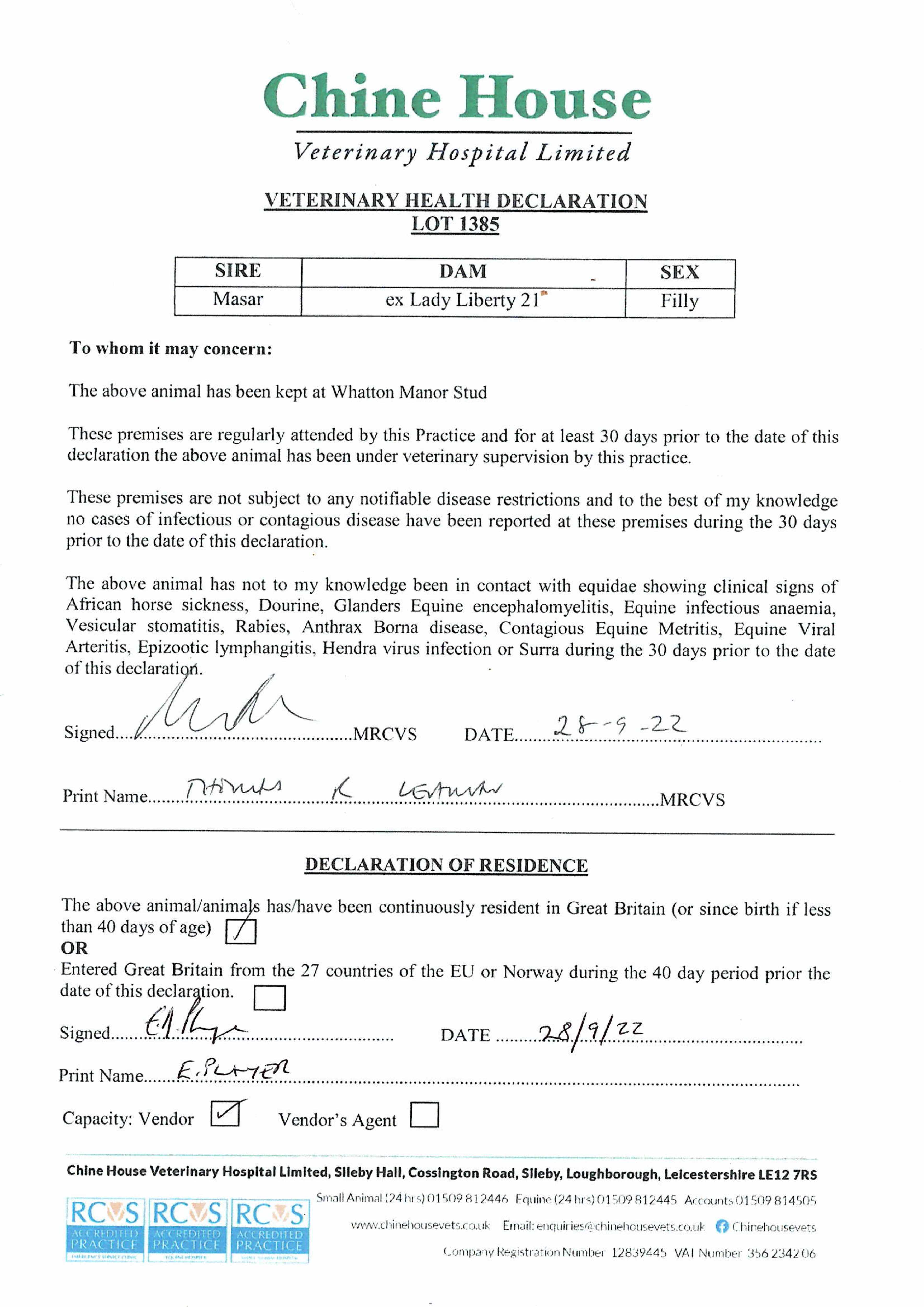 Consignor: Whatton Manor Stud