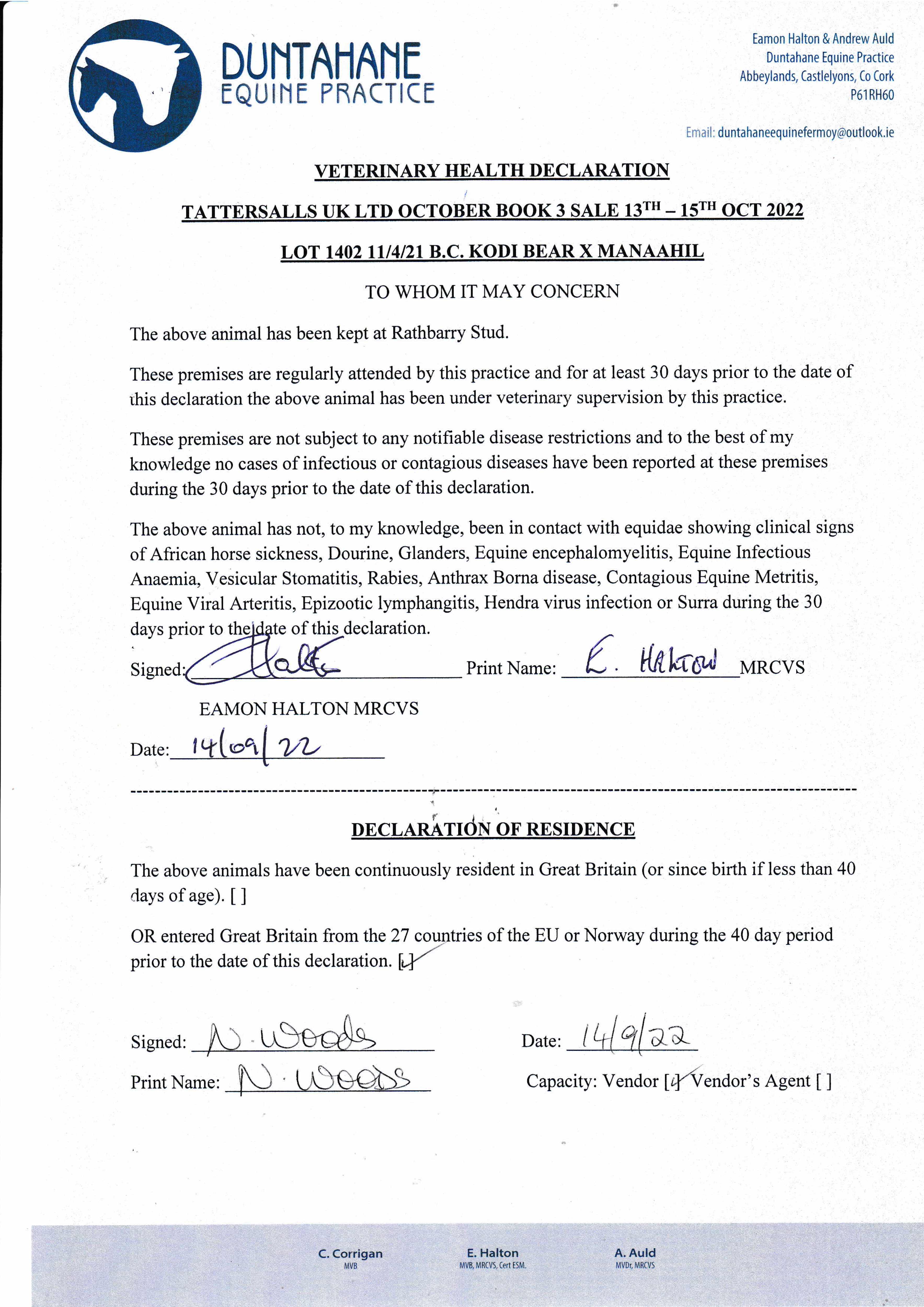 Consignor: Rathbarry Stud, Ireland