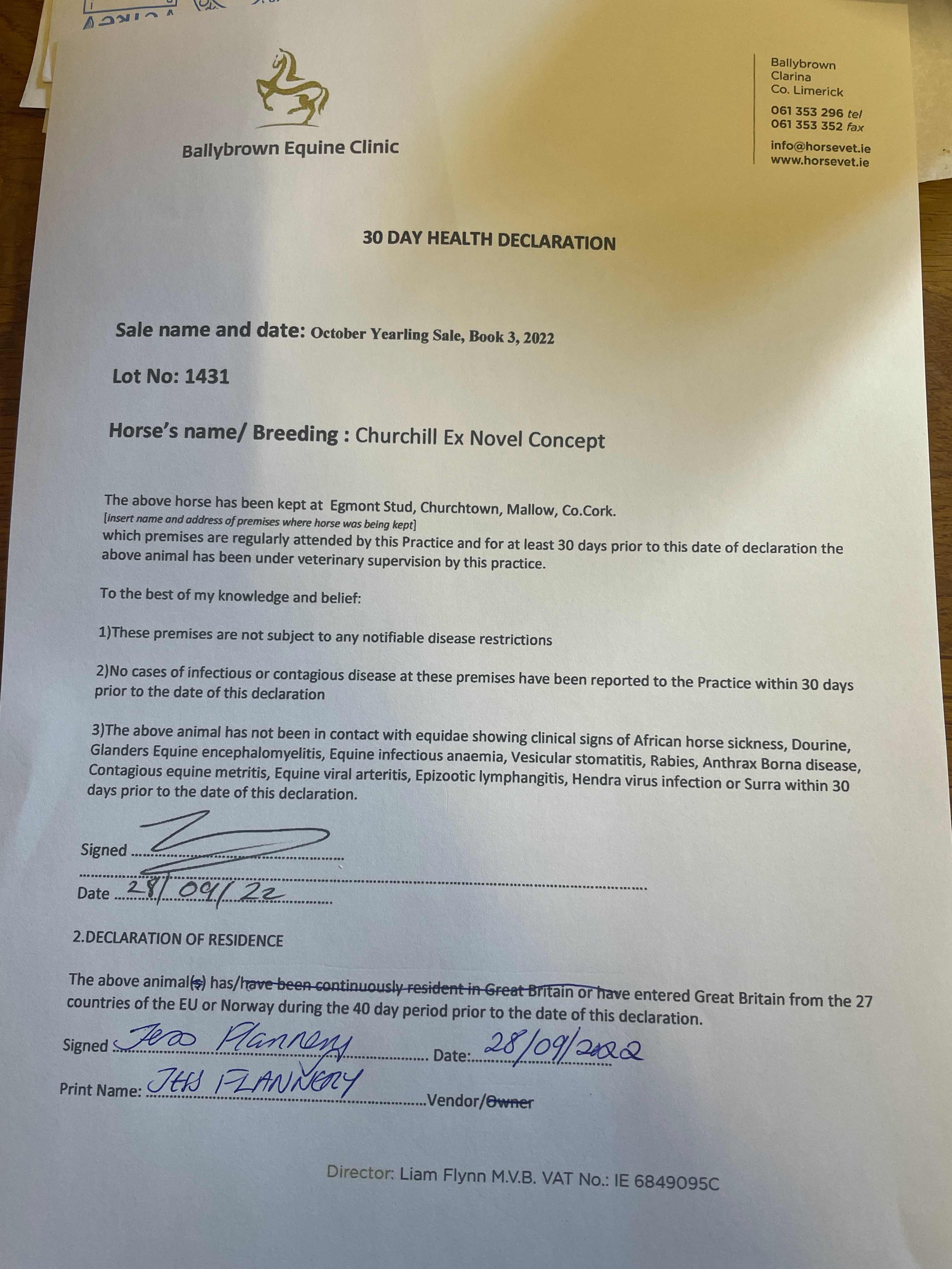 Consignor: Egmont Stud, Ireland