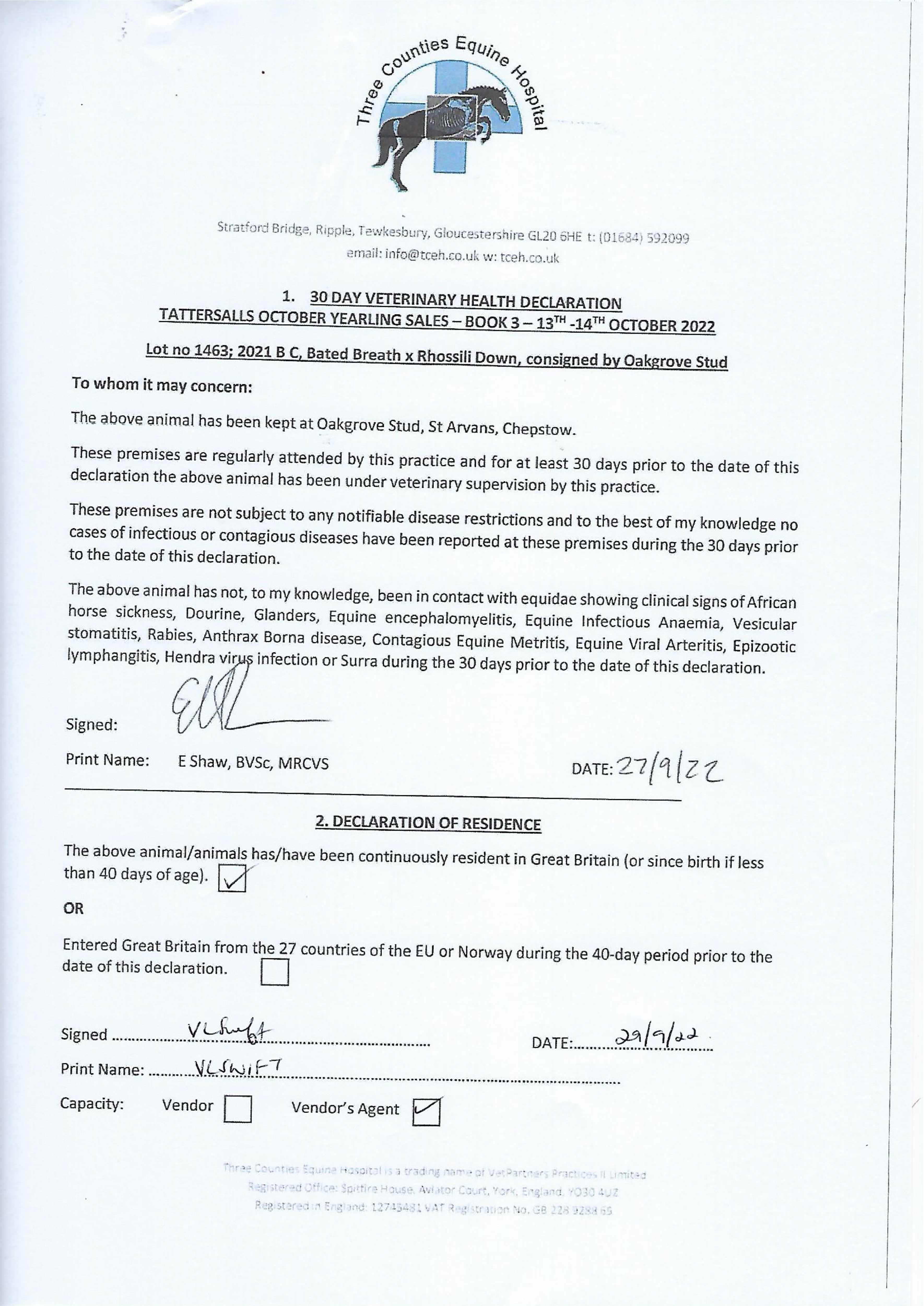 Consignor: Oakgrove Stud