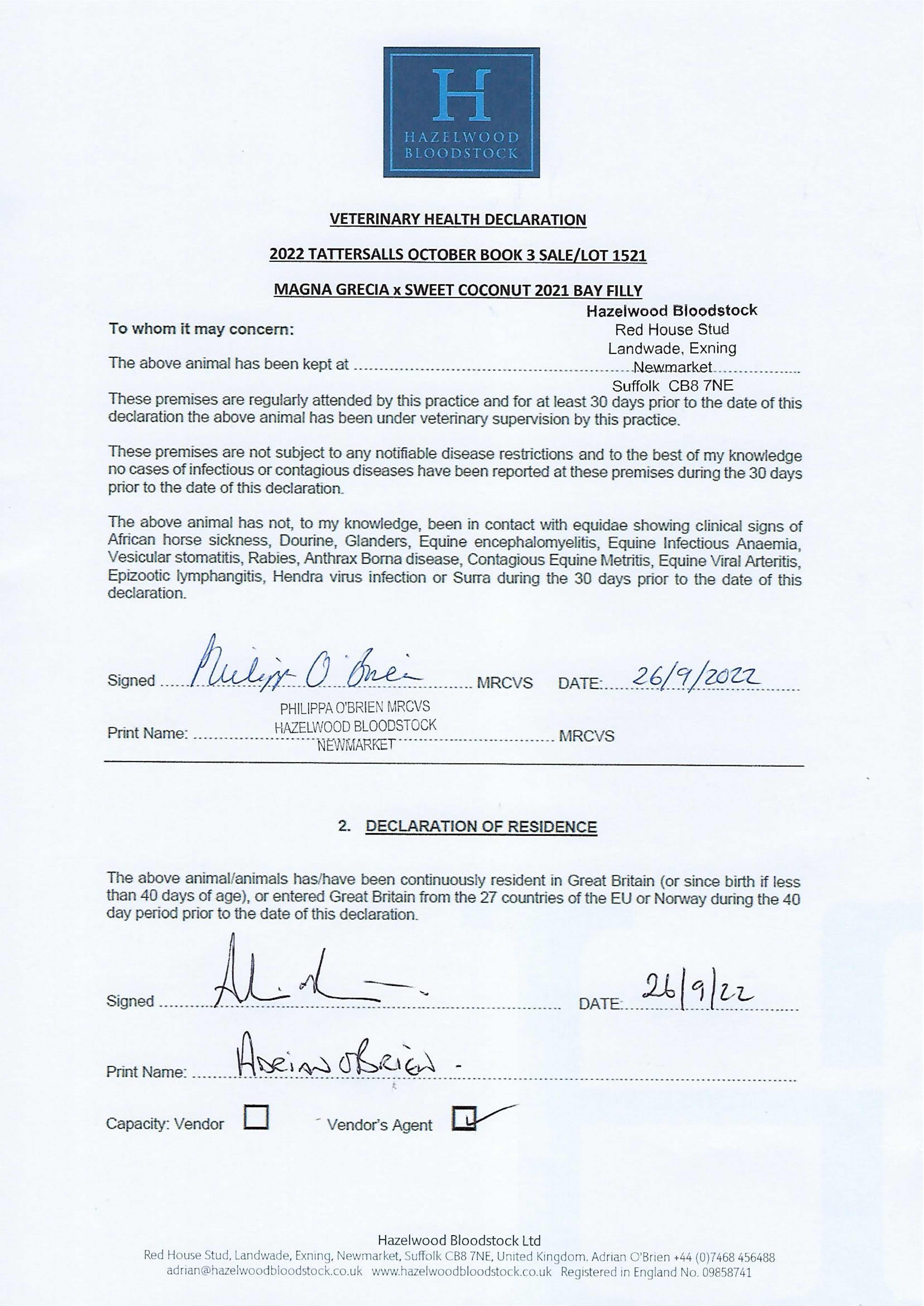 Contact: Adrian O'Brien ✆ +447468456488 ✉ adrian@hazelwoodbloodstock.co.uk
