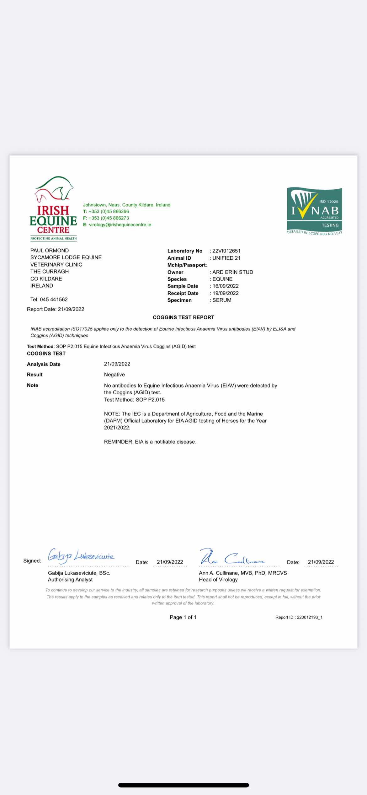 Consignor: Ard Erin Stud, Ireland