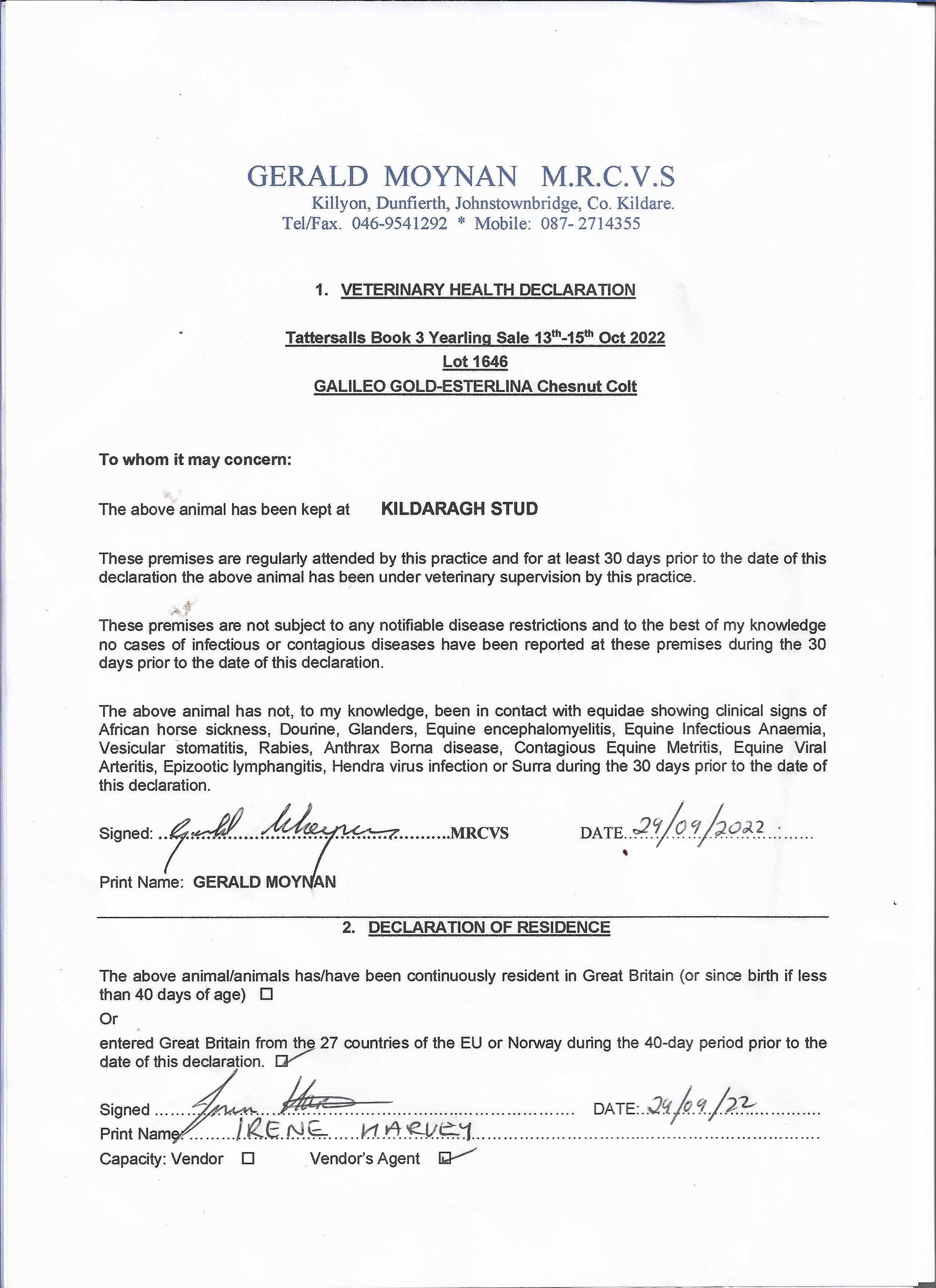 Consignor: Kildaragh Stud, Ireland (Agent)