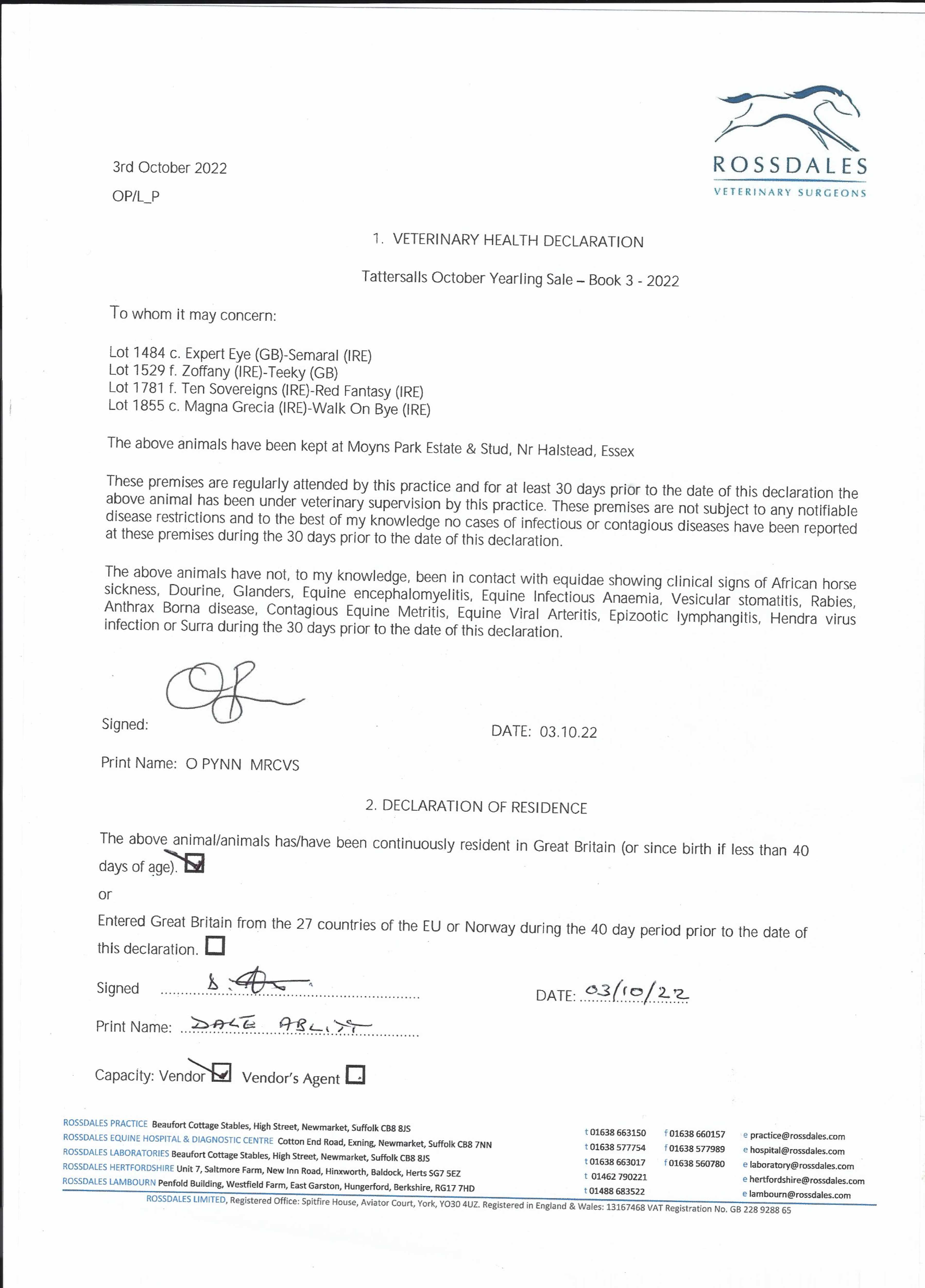 Consignor: Moyns Park Stud