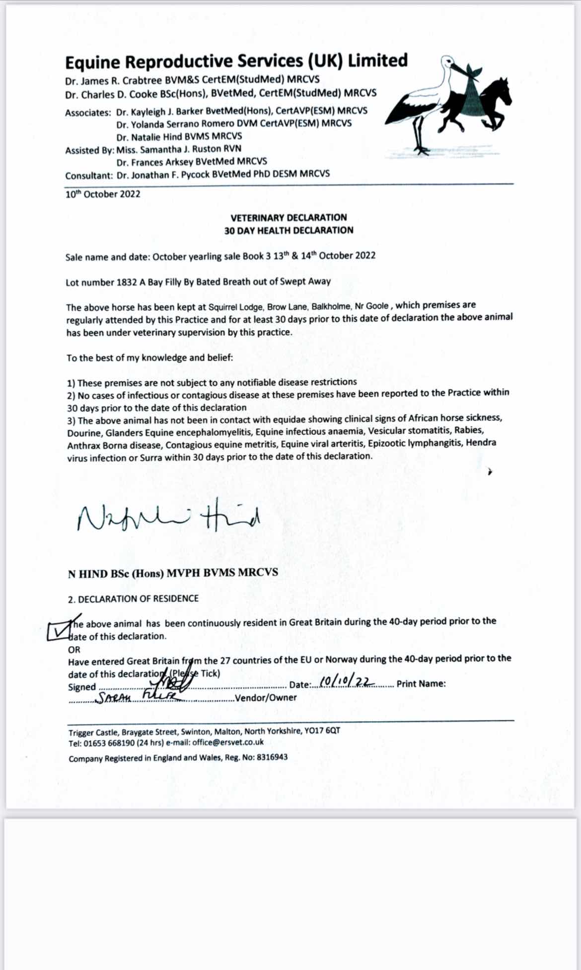 October Yearling Sale, Book 3 2024 lot 1790 F. by Ulysses (IRE) 2023, J. B. Bloodstock Ltd.=>Vendor 3,000 gns