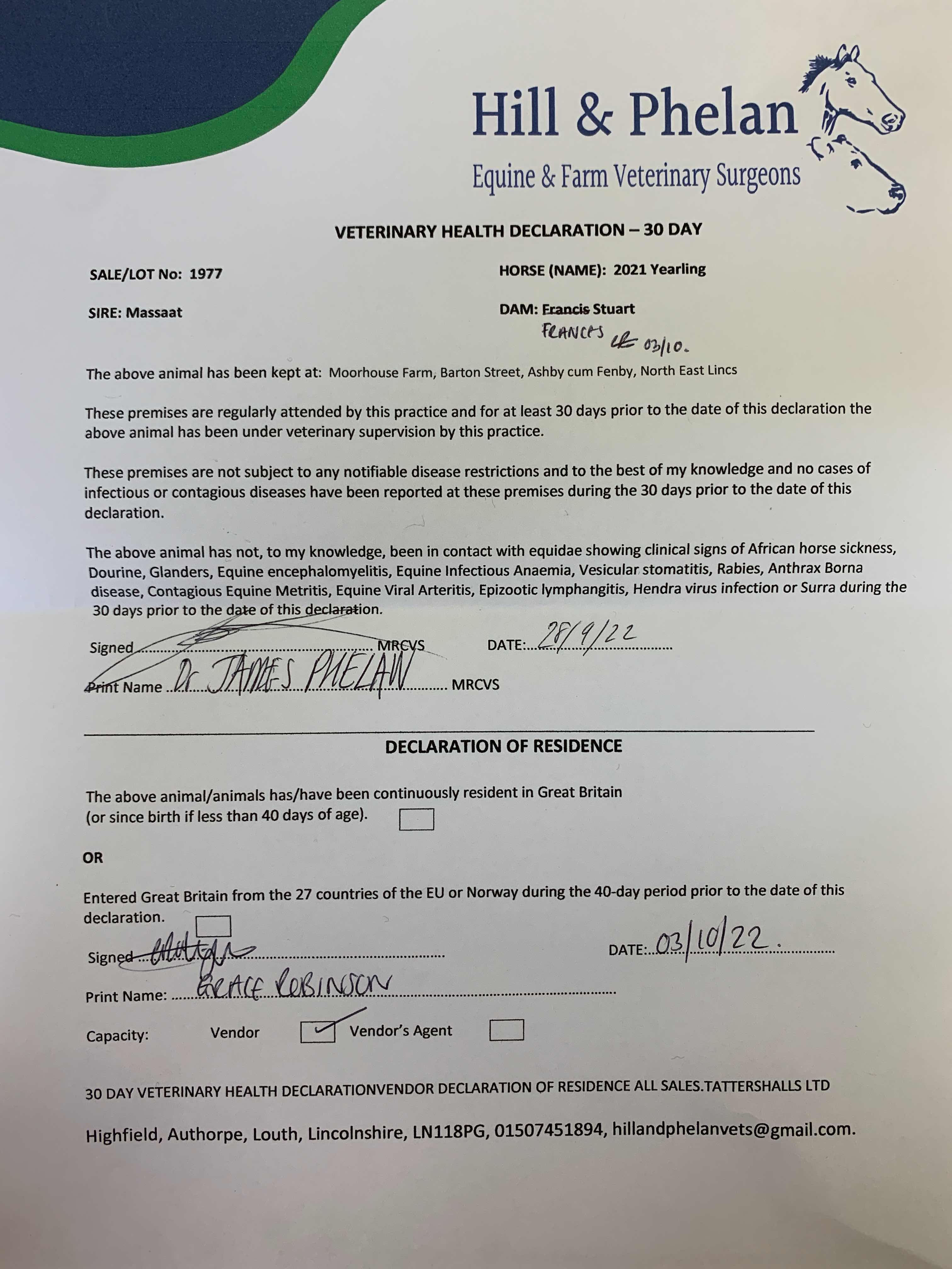 Consignor: Carrington Stud