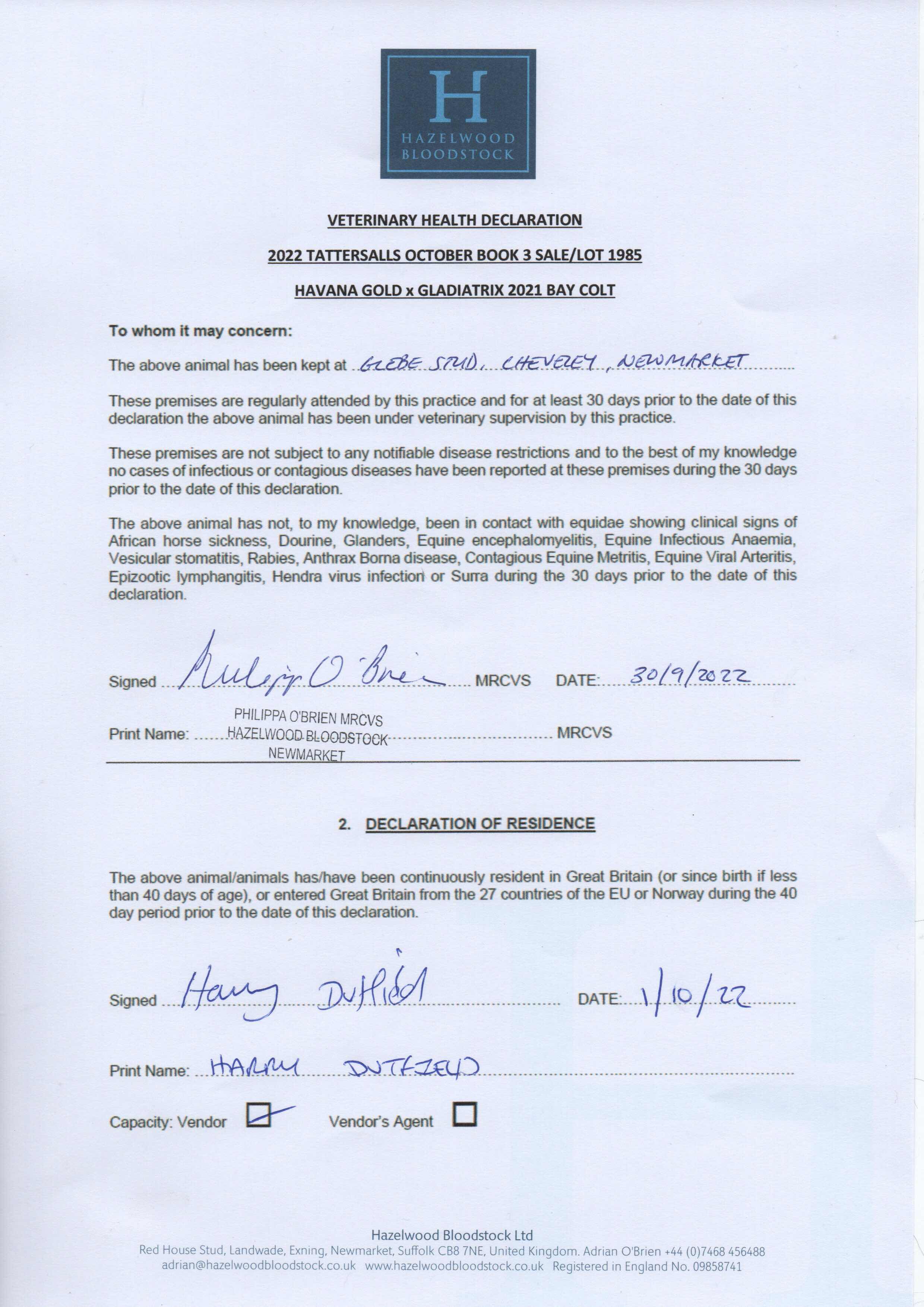 Consignor: Harry Dutfield