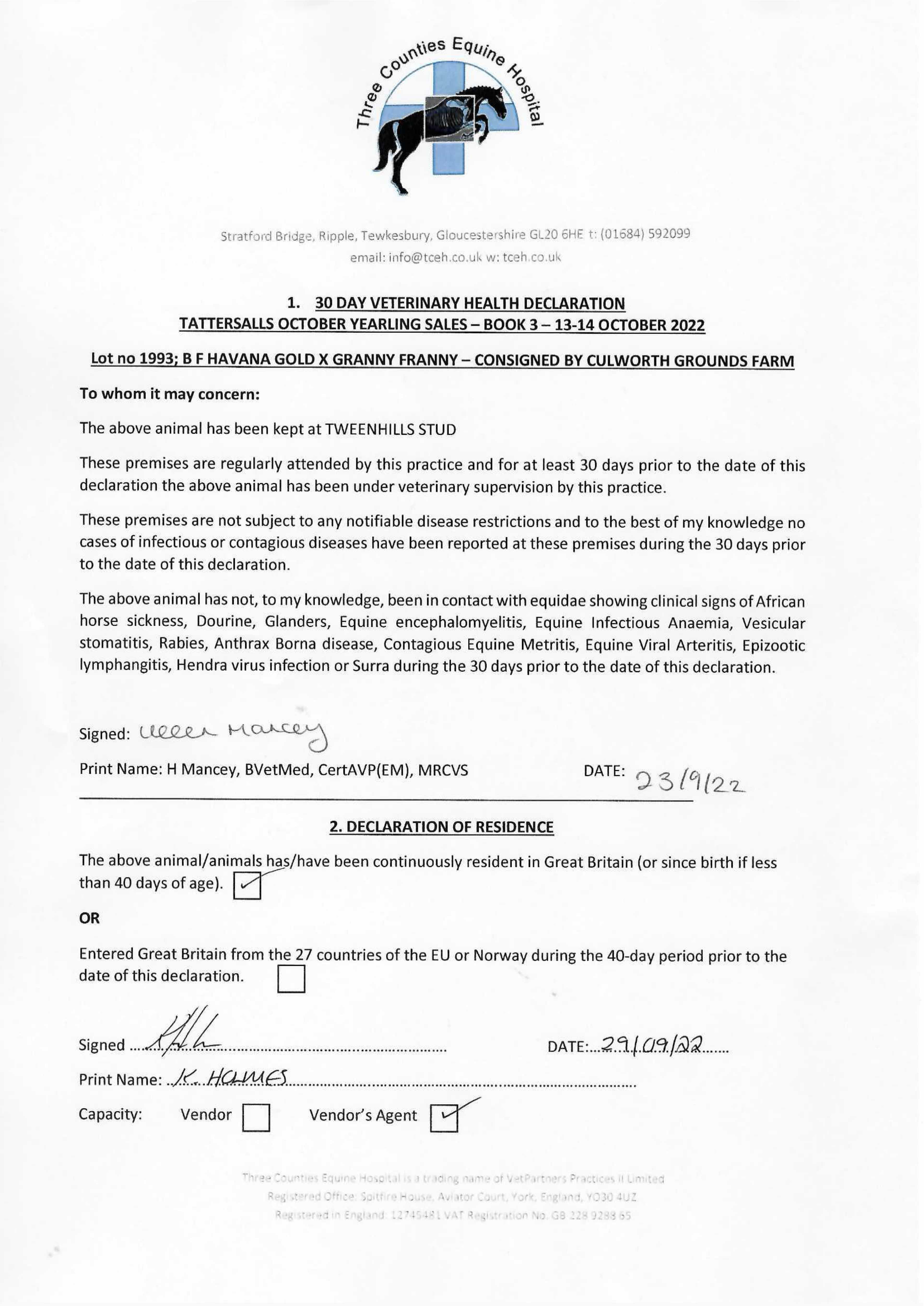 Consignor: Culworth Grounds Farm