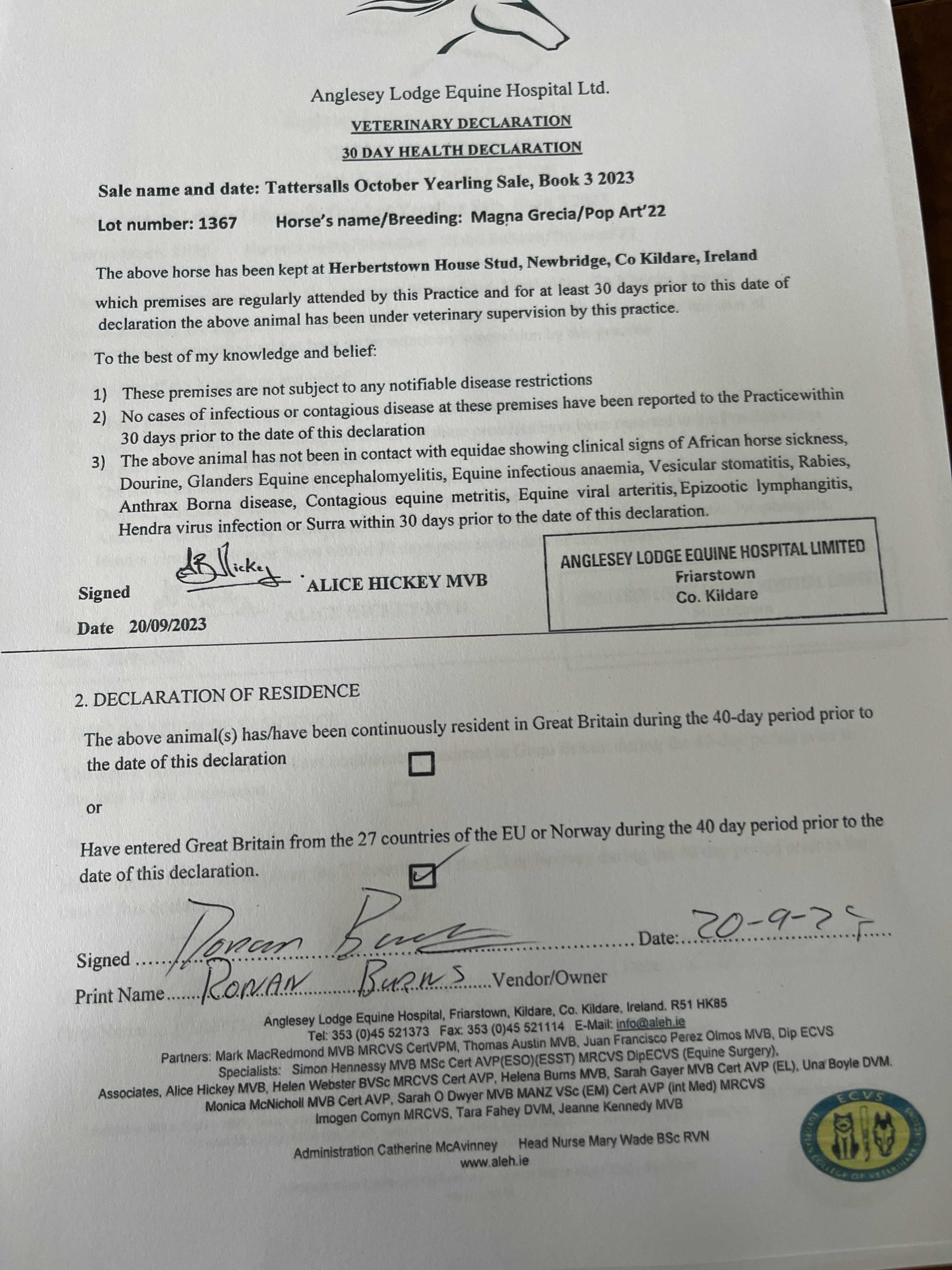 Consignor: Herbertstown House Stud (Co. Kildare), Ireland