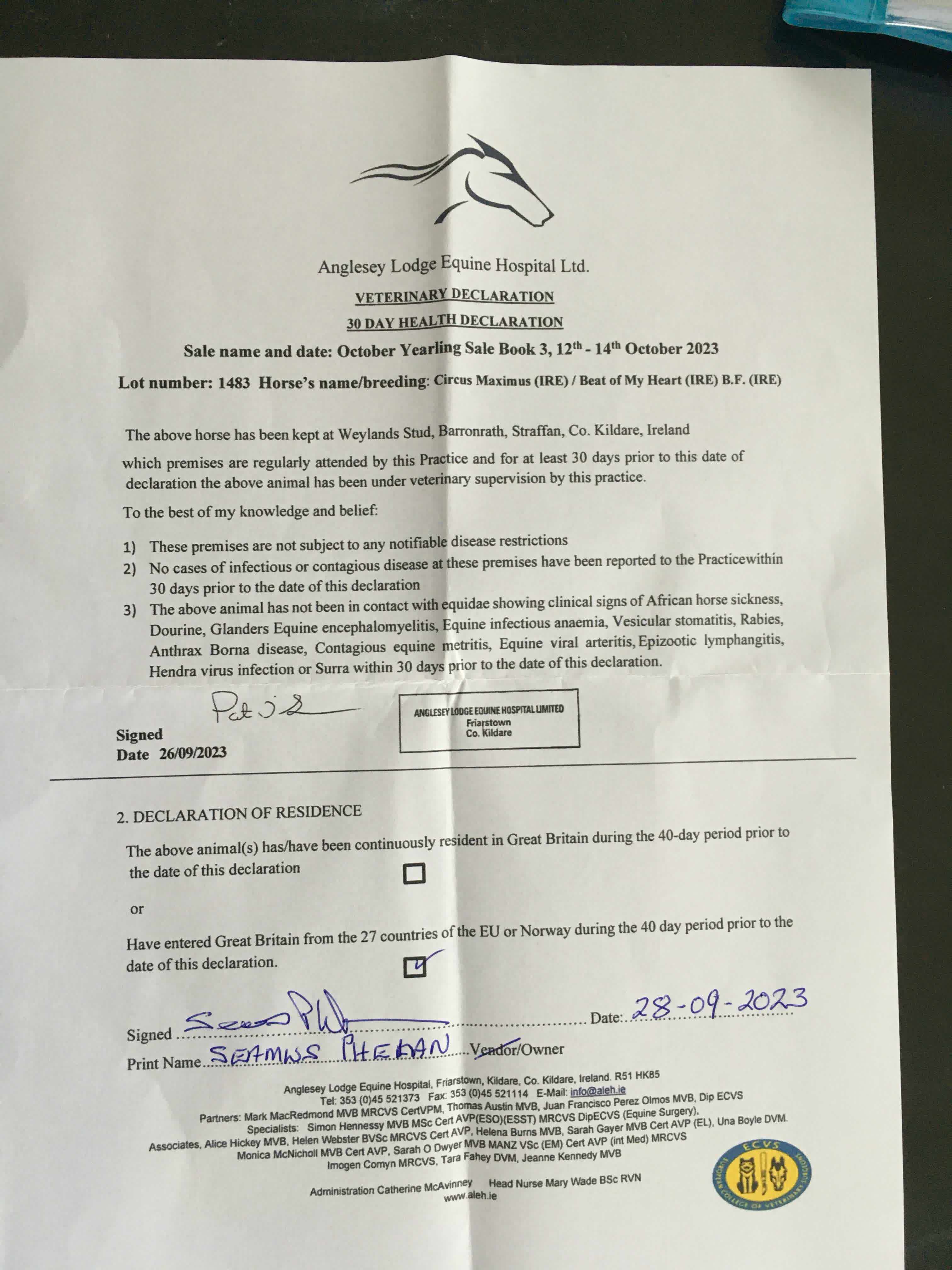 Consignor: Weylands Stud, Ireland