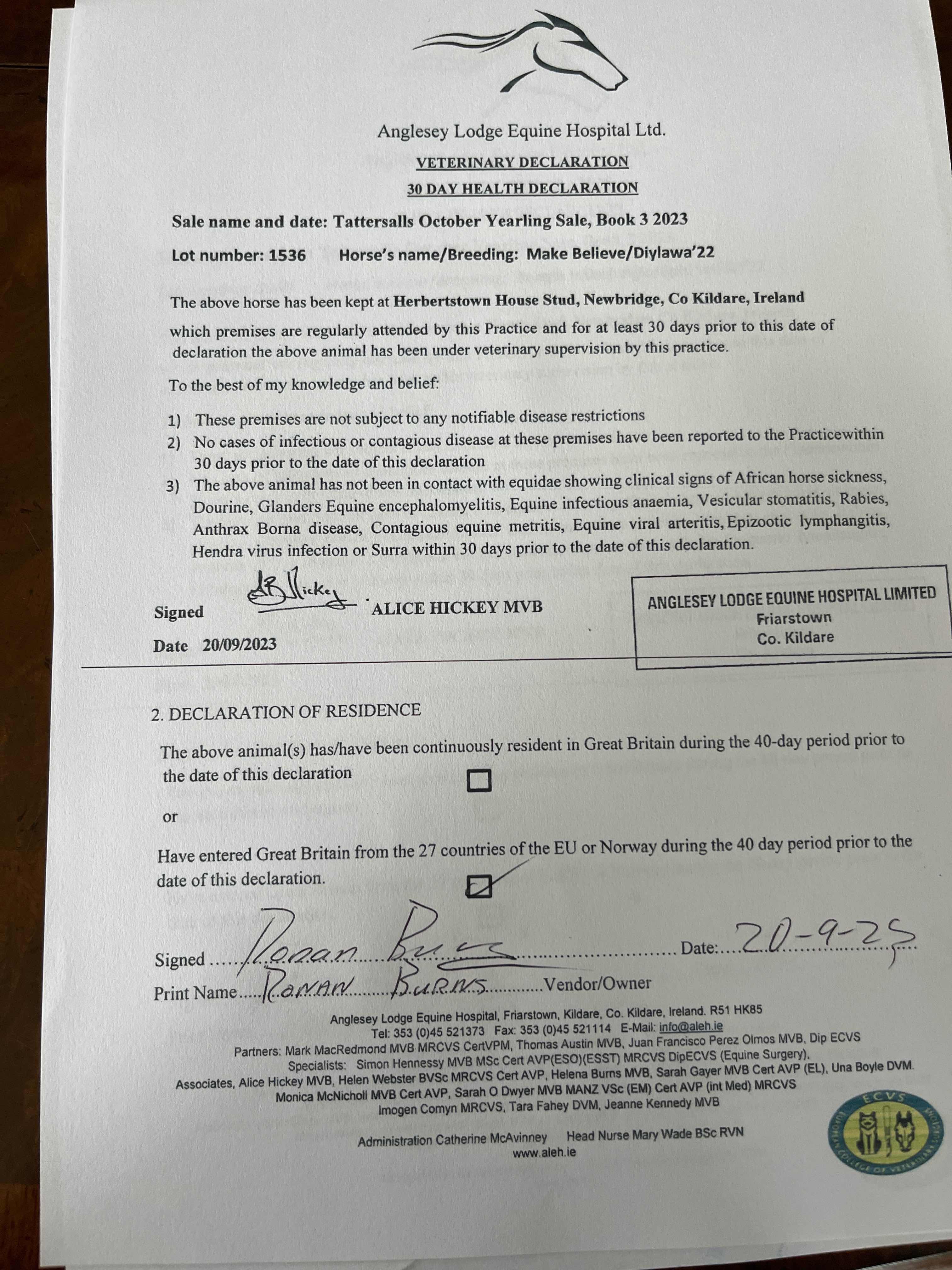 Consignor: Herbertstown House Stud (Co. Kildare), Ireland