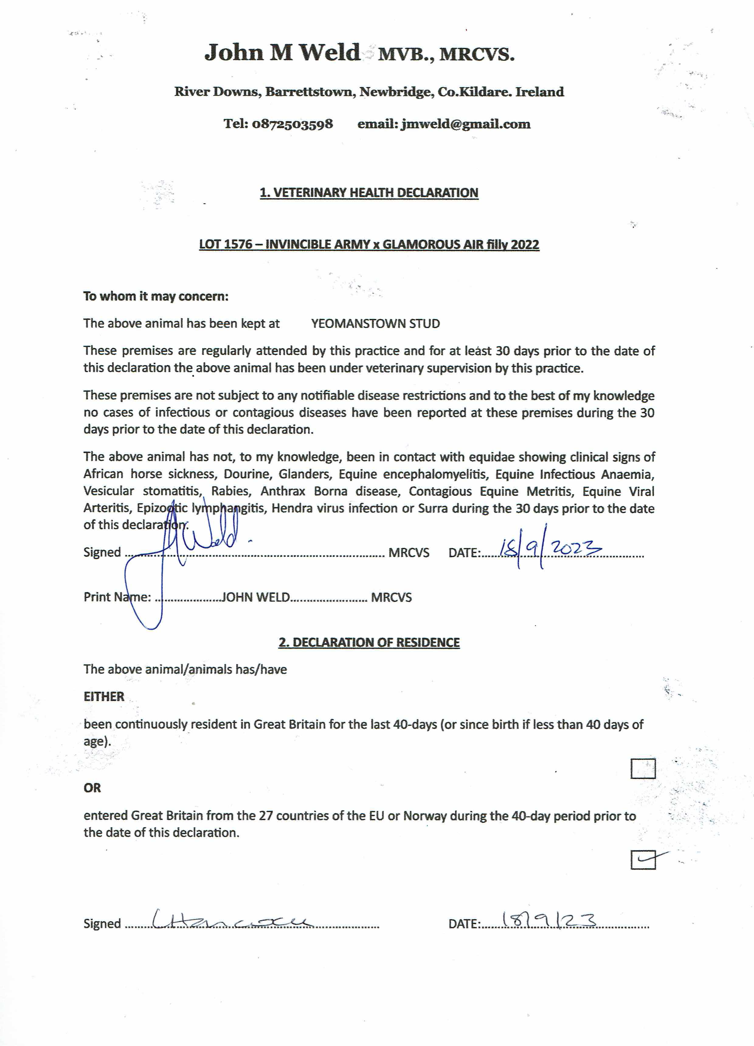 Consignor: Yeomanstown Stud, Ireland